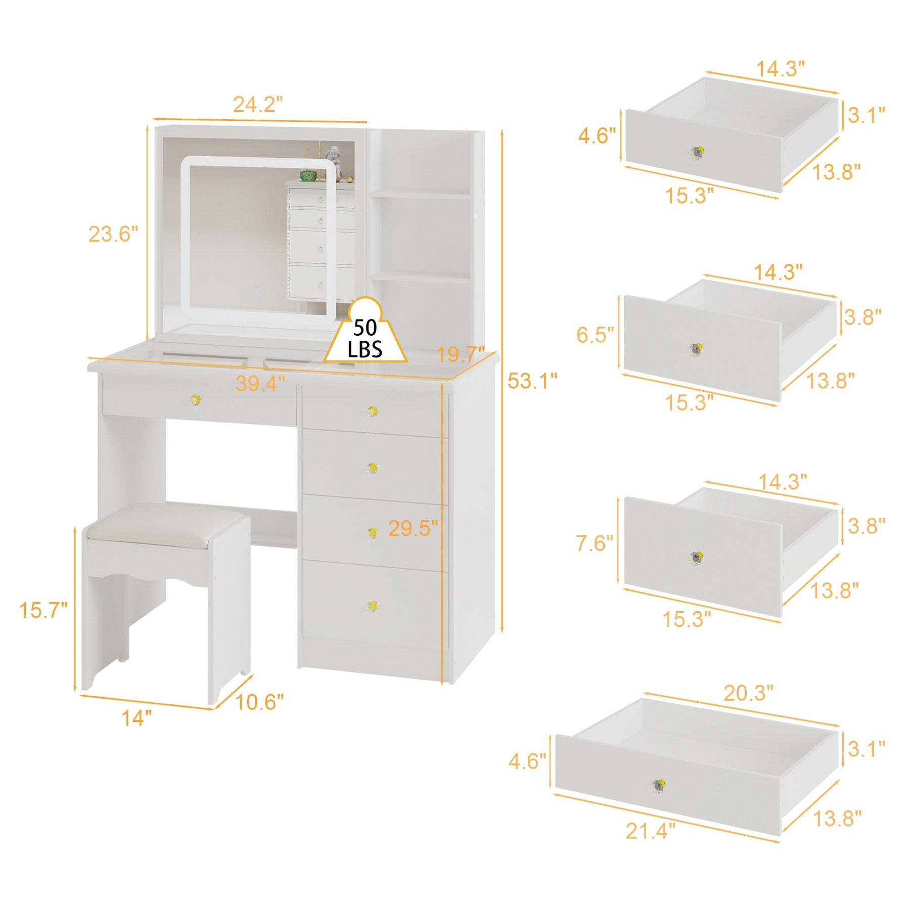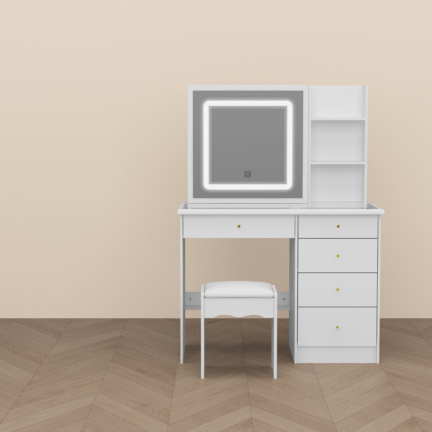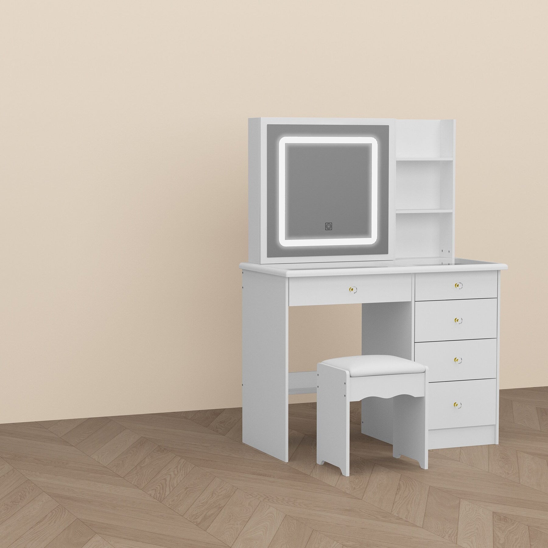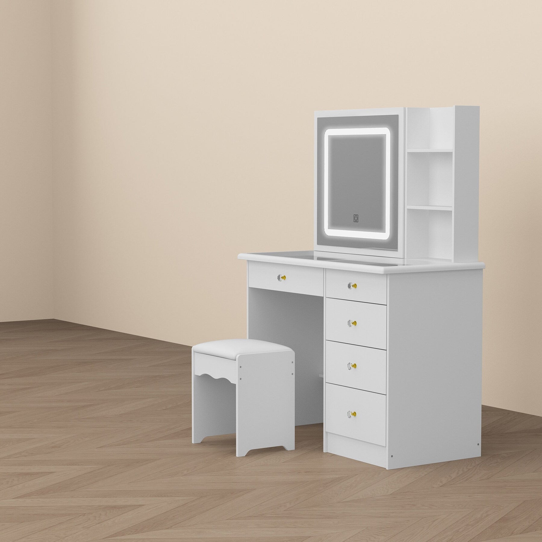 • Elegant Vanity Design: Features a refined matte white finish with gold crystal handle accents, perfect for adding sophistication to any space.
