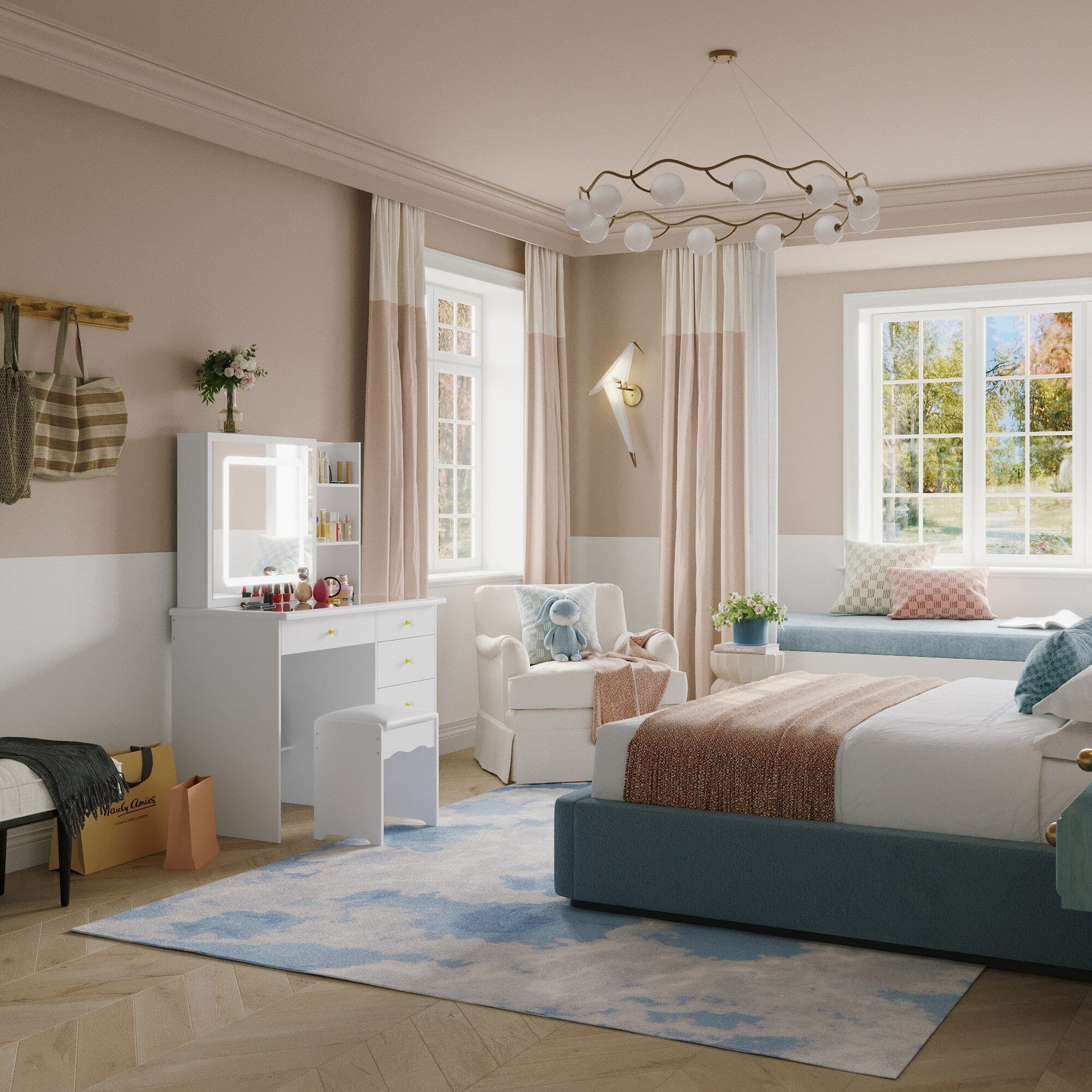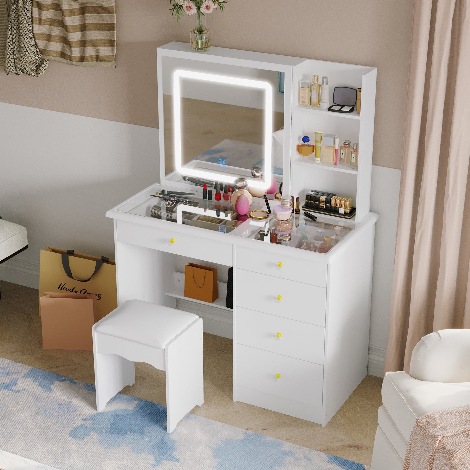 • Ample Storage Options: Five drawers and additional shelves offer multiple organizing solutions without sacrificing elegance.