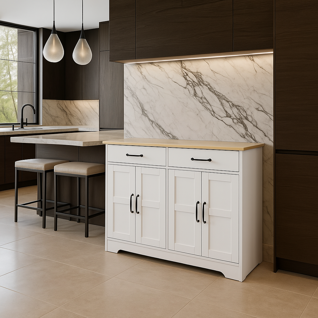 - Ample Storage: Includes 2 drawers and 4 doors for flexible organization.