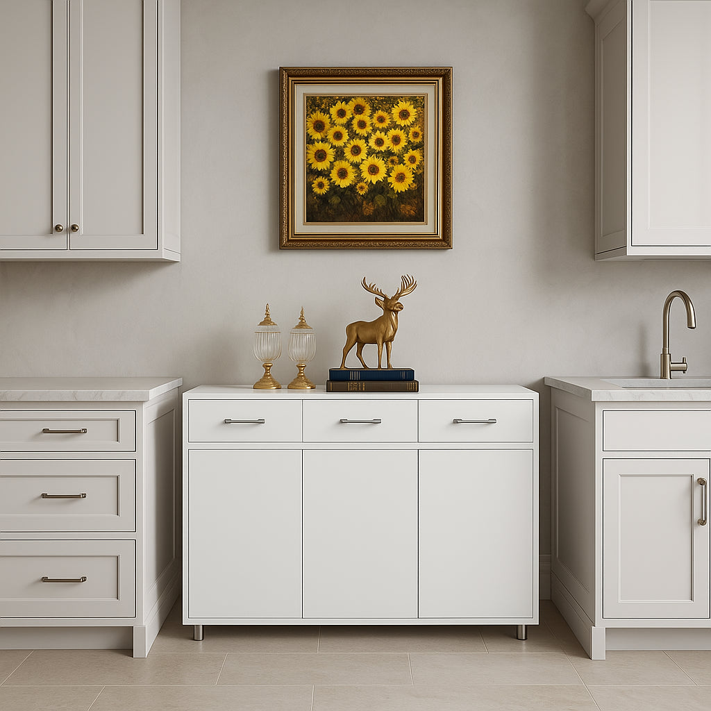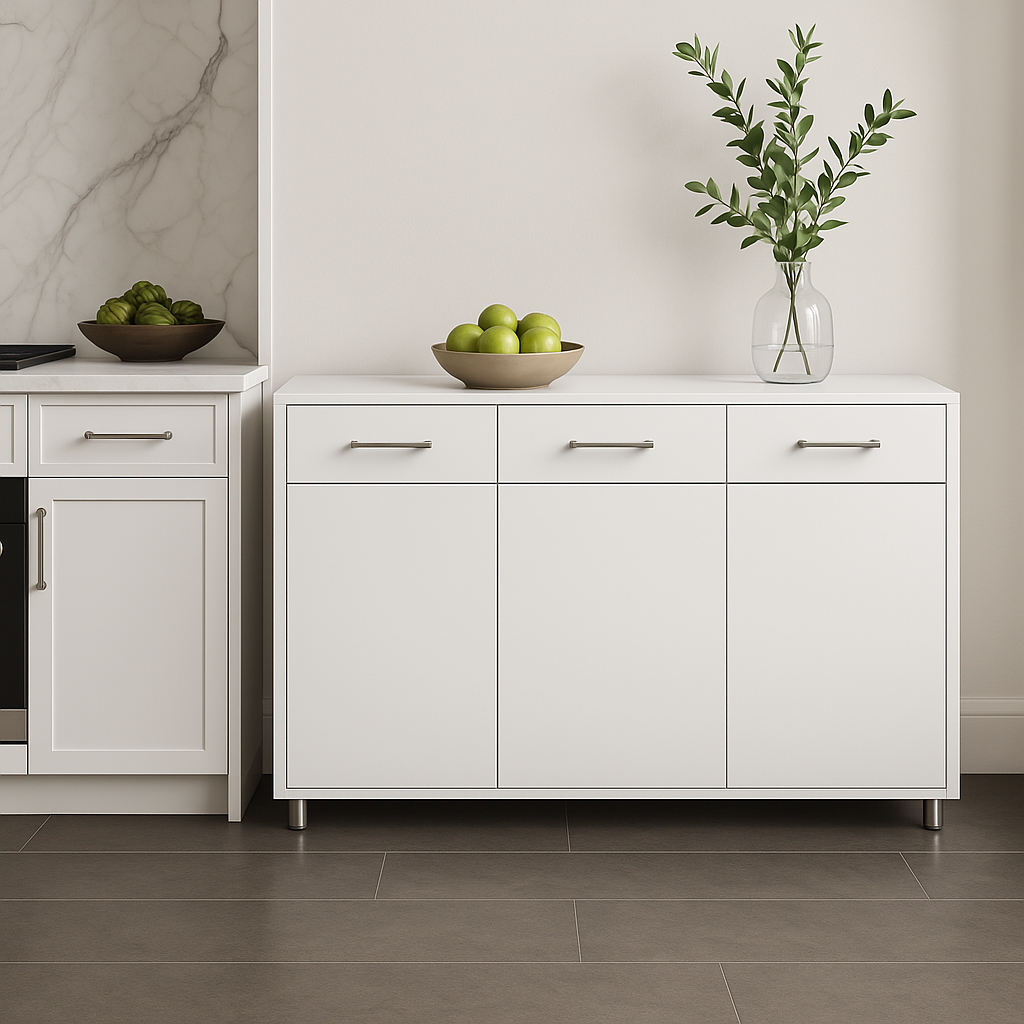 FUNKOL White MDF Kitchen Cabinet with 3 Drawers and 3 Doors