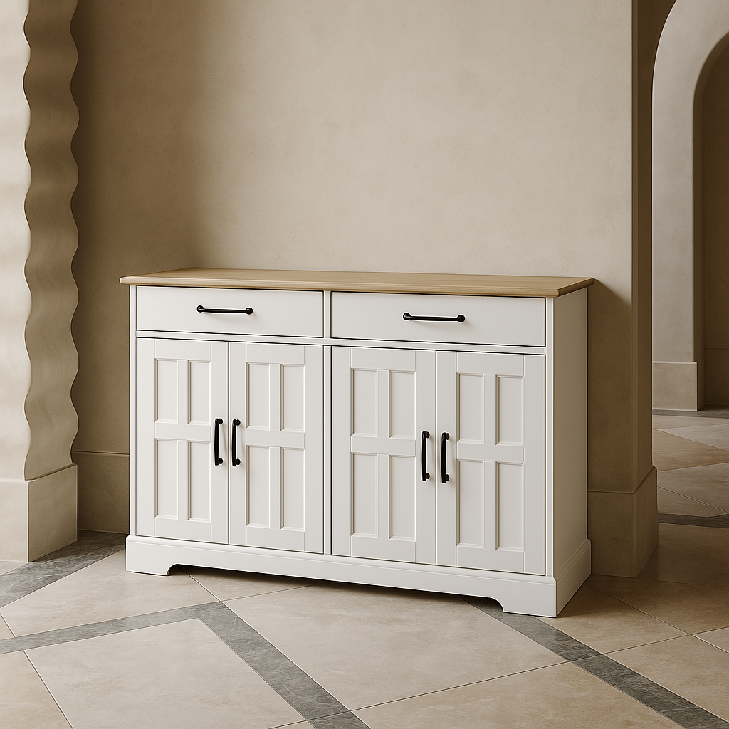 - Ample Storage: Includes 2 drawers and 4 doors for flexible organization.