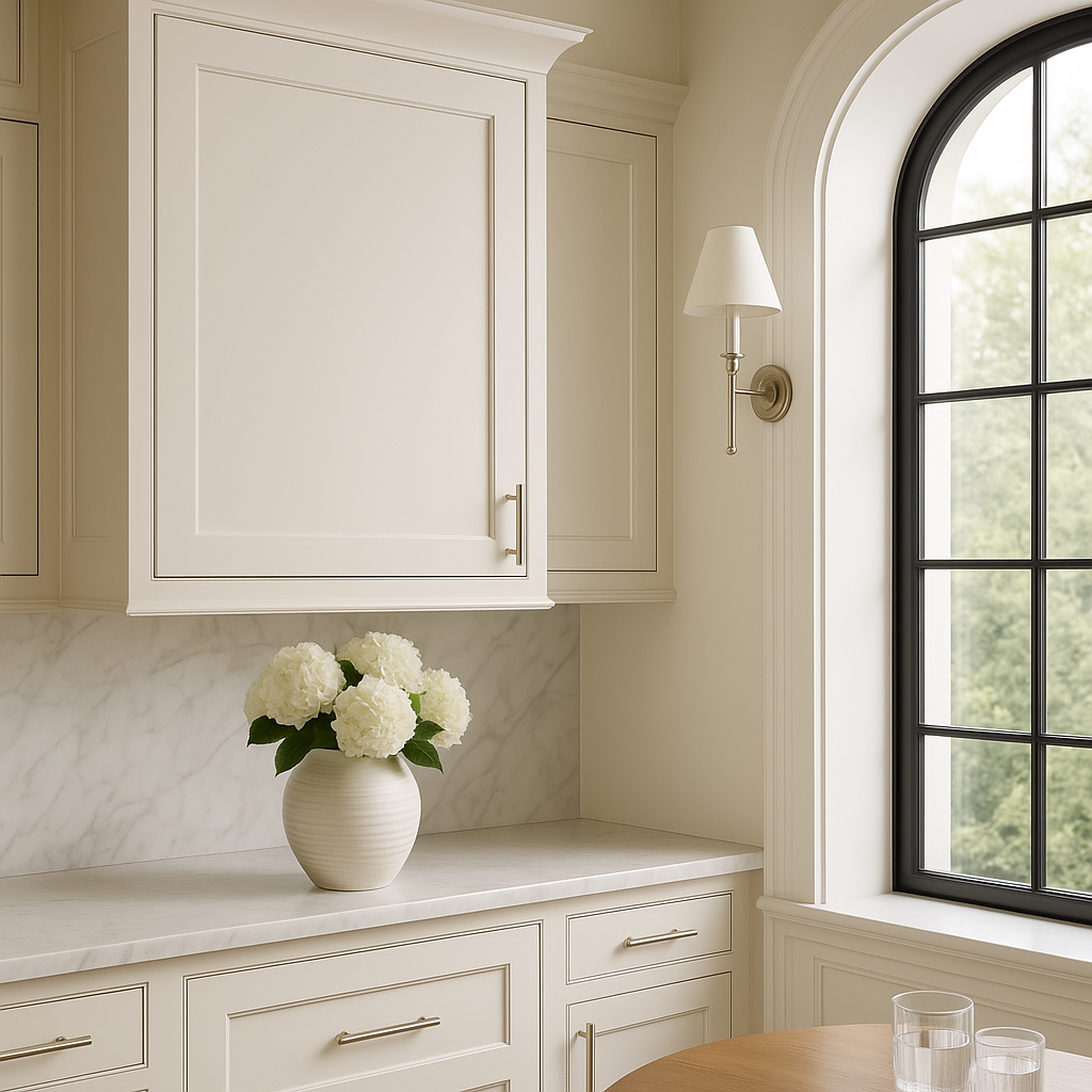 - Elegant Design: Traditional shaker styling with antique white finish.