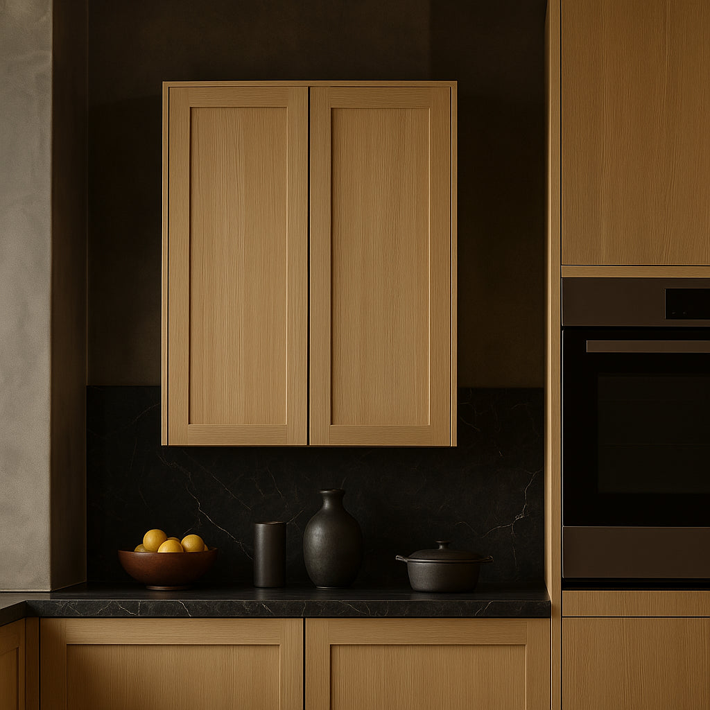 - Stylish Design: Shaker-style doors with a painted white oak finish add visual appeal.