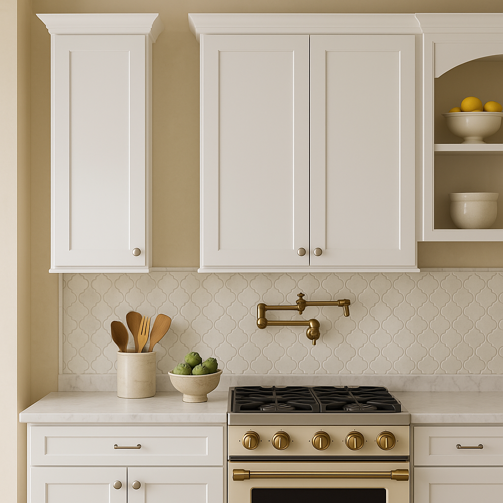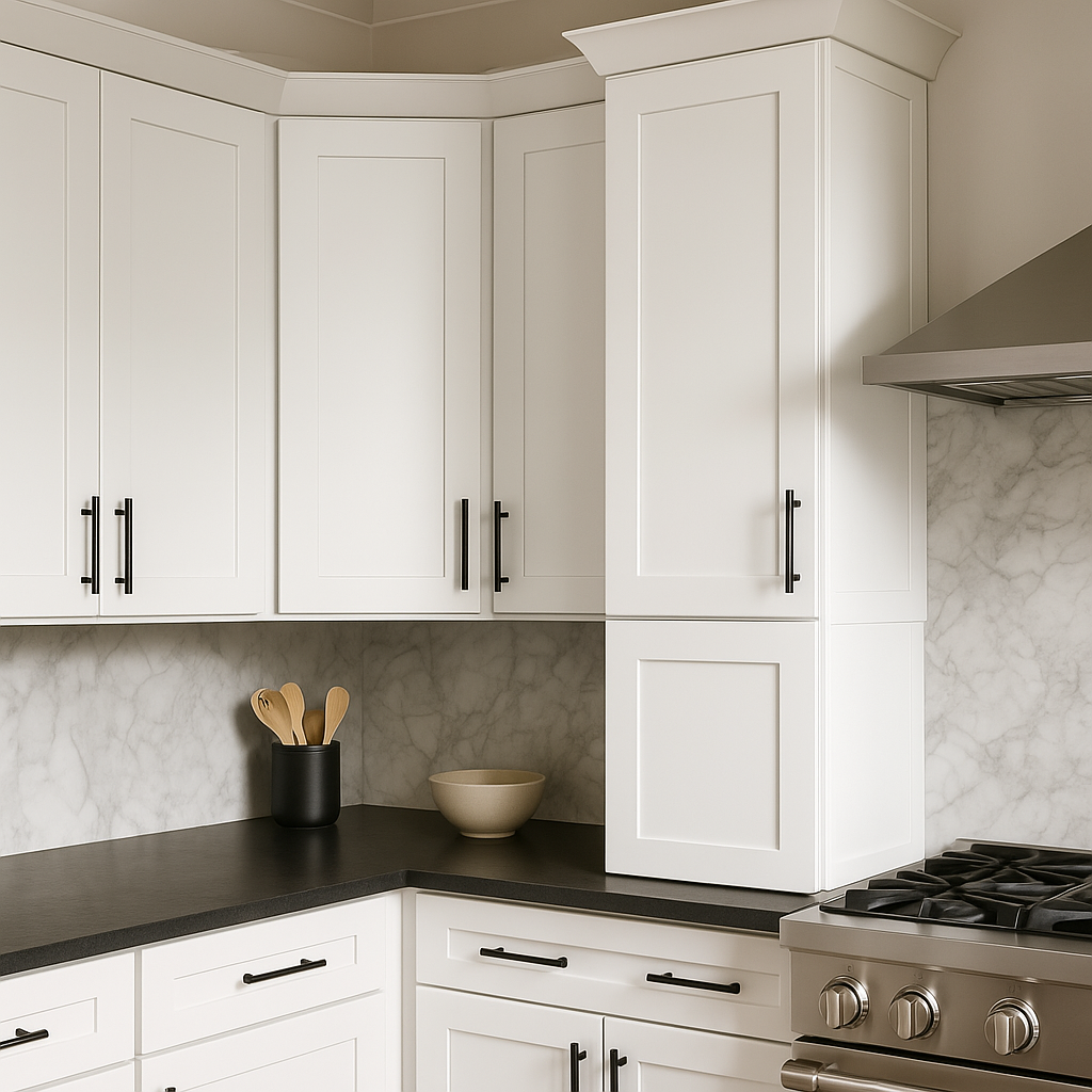 • Stylish Design: Shaker-style paneling with a bright white finish.
