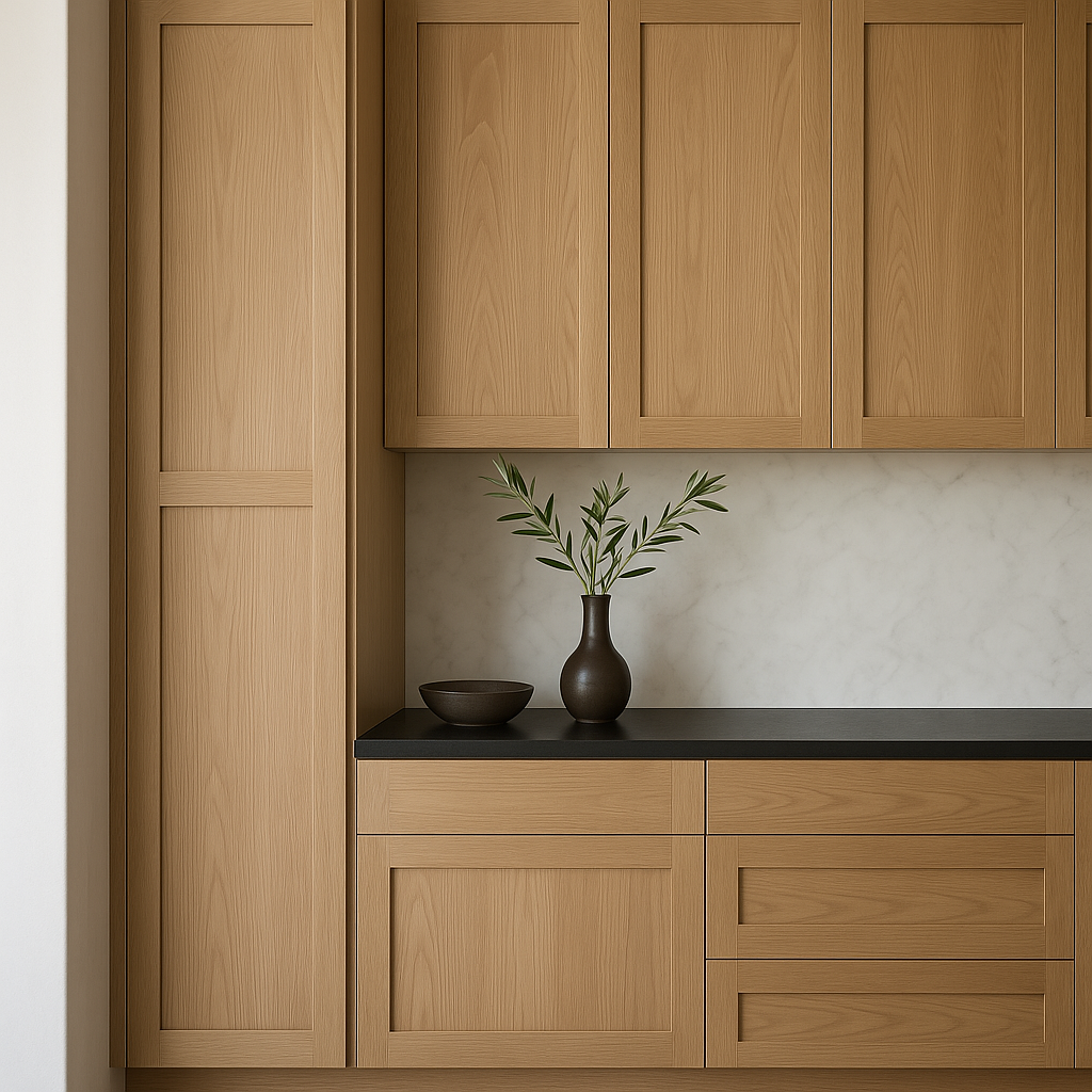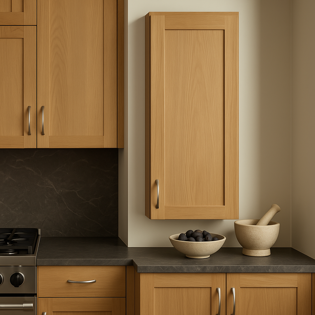 - Stylish Design: Shaker-style paneling with a white oak finish for a modern look.