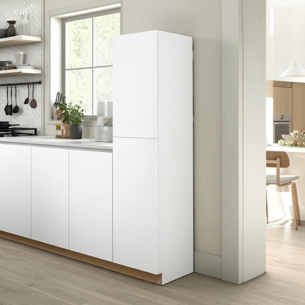 Transform your kitchen into a haven of modern sophistication with the Edgeley Pantry Cabinet. Its pristine white thermofoil finish exudes timeless elegance, while the frameless design ensures seamless integration into any contemporary space. Pair it with bold accents or minimalist decor to create a striking visual impact. This cabinet is not just a storage solution; it's a statement piece that elevates your kitchen's aesthetic.