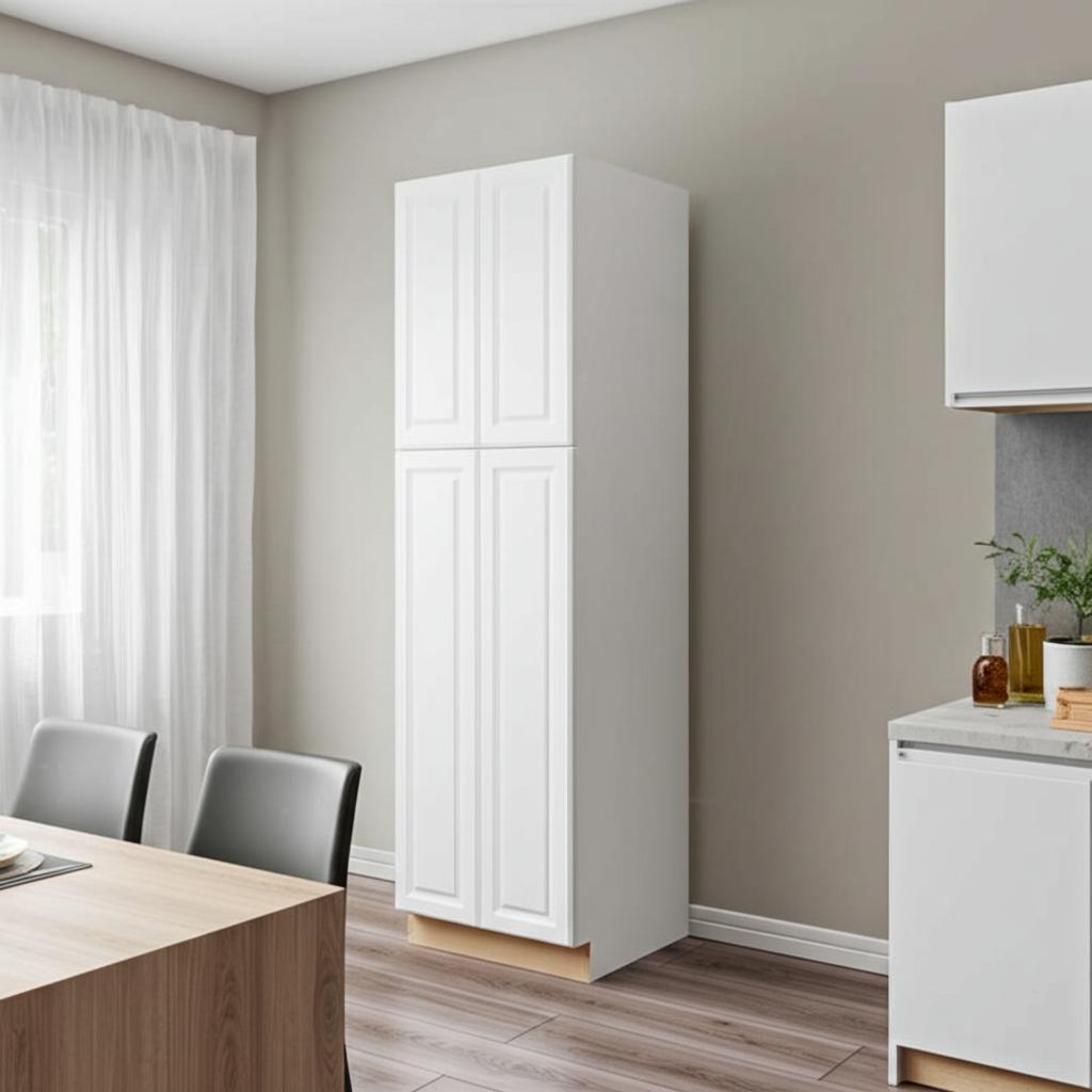 The Elgin Pantry Cabinet is a masterpiece of design and utility, seamlessly blending into any kitchen decor. Its soft-close doors and adjustable shelves offer both sophistication and practicality, while the crisp white finish brightens the space, creating an inviting atmosphere. Pair it with brass hardware for a touch of luxury or integrate it into a modern farmhouse aesthetic for a cozy yet refined look. This cabinet is not just storage; it's a statement piece that elevates your kitchen to new heights of style and functionality.