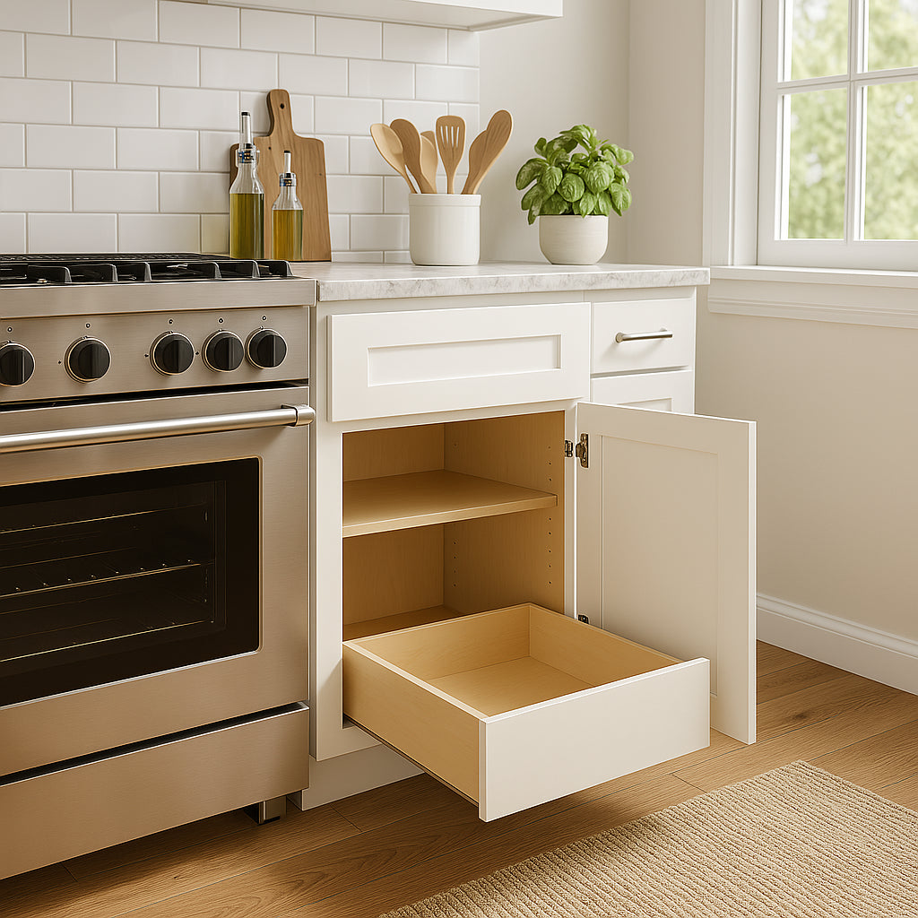 • Elegant Design: Shaker-style doors with a clean, modern look.