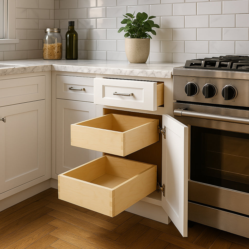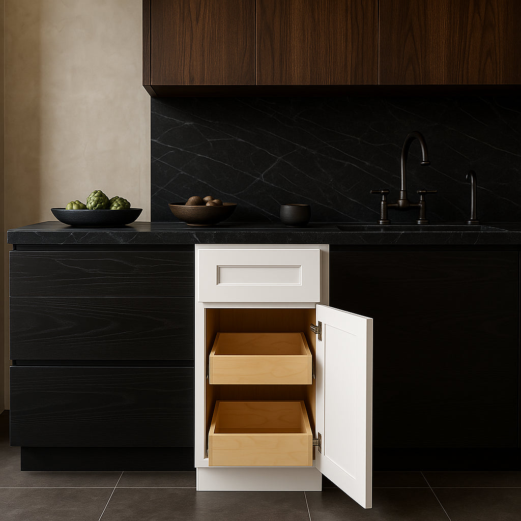- Soft-Close Technology: Equipped with soft-close drawers and doors to prevent slamming and ensure smooth operation.
