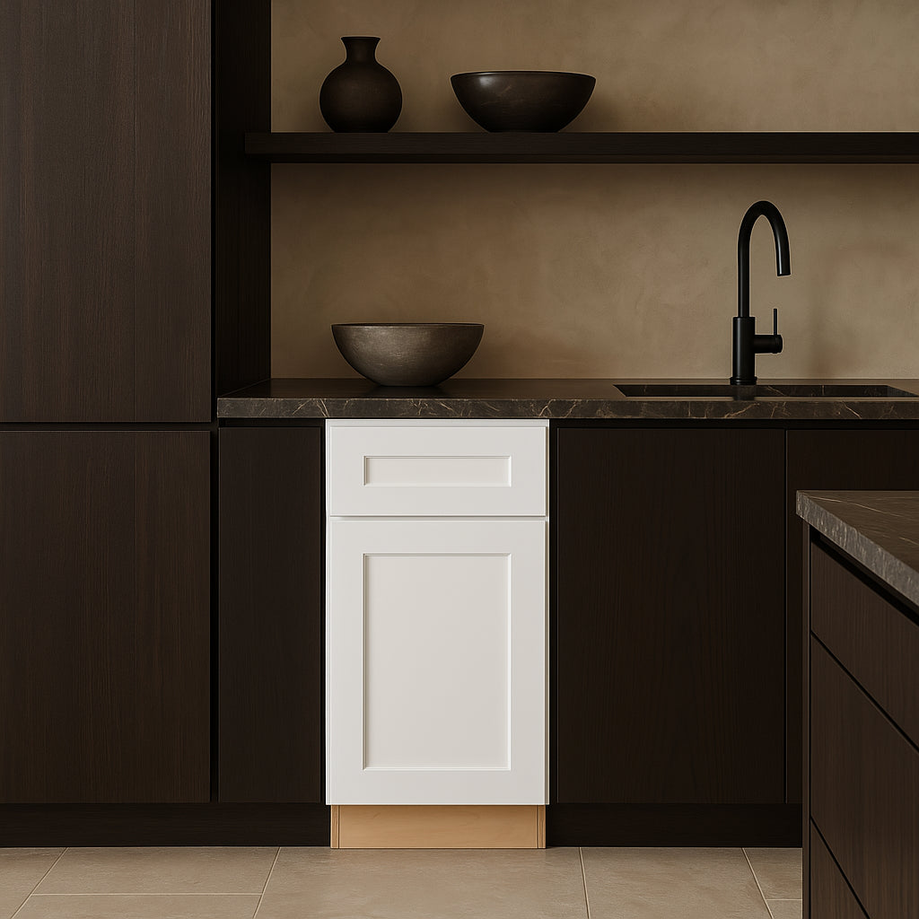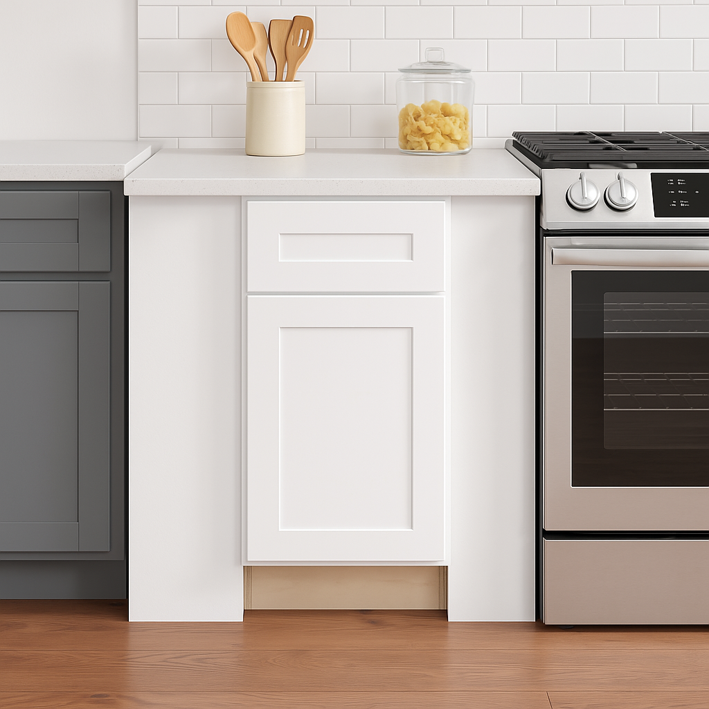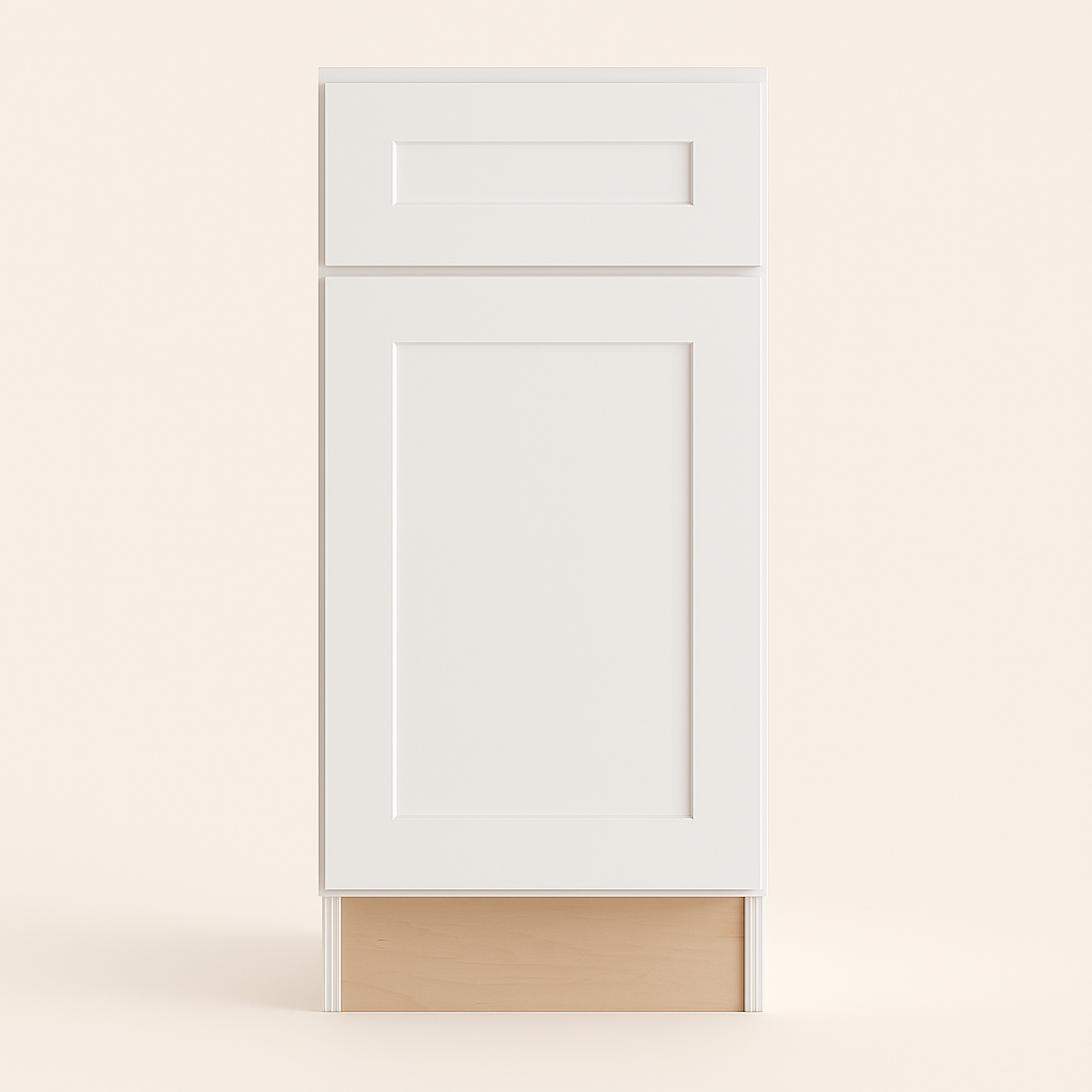 The Newport Base Kitchen Cabinet in Pacific White combines durability with modern design. Featuring CARB II compliant plywood construction, shaker-style doors, and soft-close functionality, it offers both style and practicality for your kitchen.
