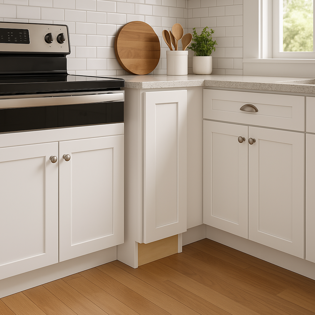 The Newport Base Kitchen Cabinet combines durable all-plywood construction with a stylish shaker design and a bright Pacific White finish. Featuring adjustable shelves and a full-height door, it offers both functionality and elegance for modern kitchens.
