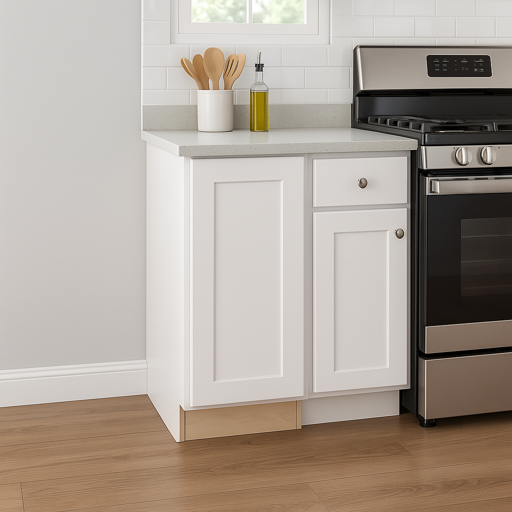 The Newport Base Kitchen Cabinet combines durable CARB-compliant plywood construction with elegant shaker-style MDF doors in a Pacific White finish. Fully assembled and featuring adjustable shelving, it offers both style and practicality for modern kitchens.