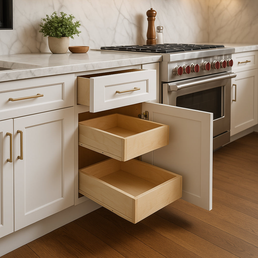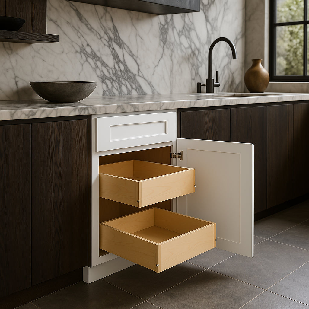 - Soft-Close Technology: 2 hardwood dovetail rollout trays with soft-close allow for seamless access to stored items.