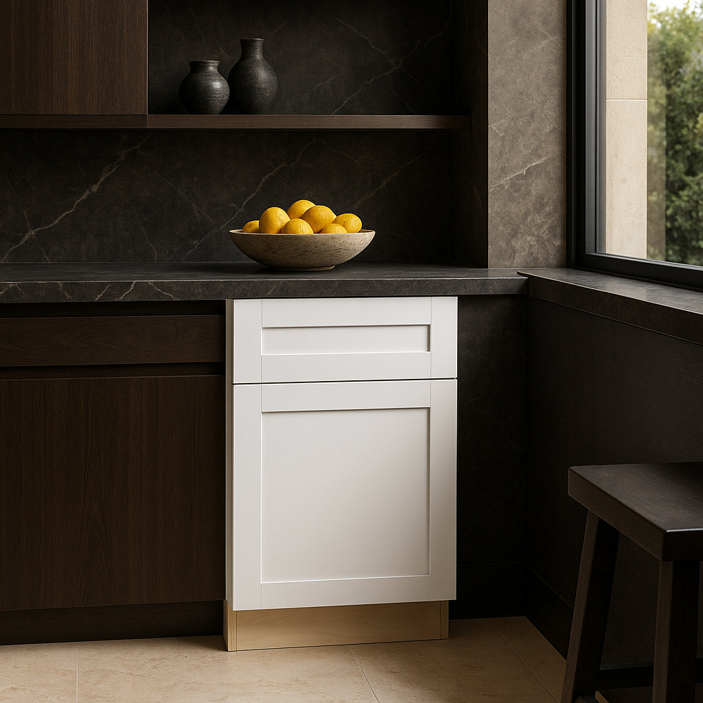 The Vesper White Shaker Base Kitchen Cabinet is a masterpiece of modern design, blending functionality with timeless aesthetics. Its pristine white finish and shaker-style doors create a bright and inviting atmosphere, perfect for any kitchen. Pair it with contrasting countertops to highlight its clean lines and sophisticated charm. This cabinet is not just a storage solution but a statement piece that elevates your culinary space.