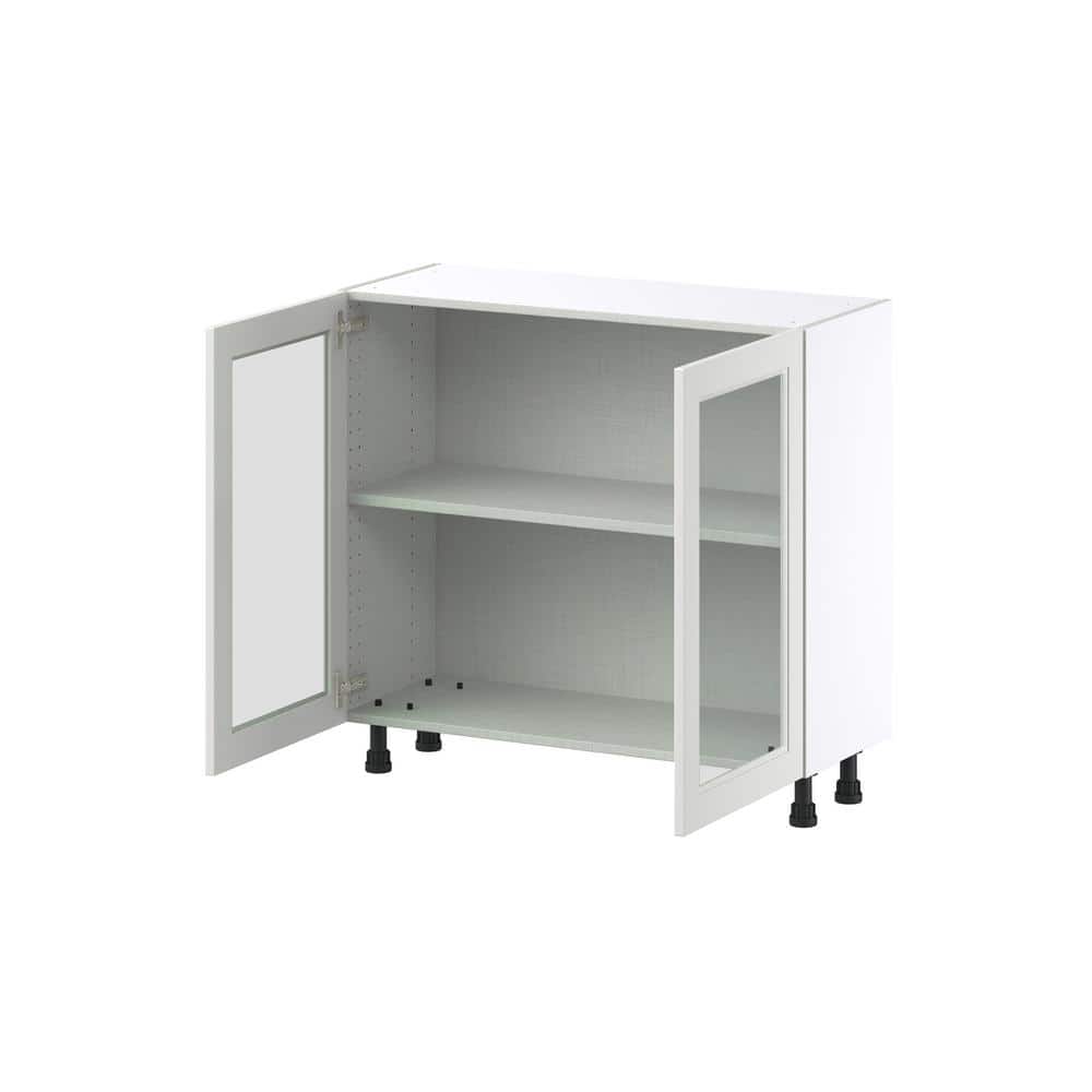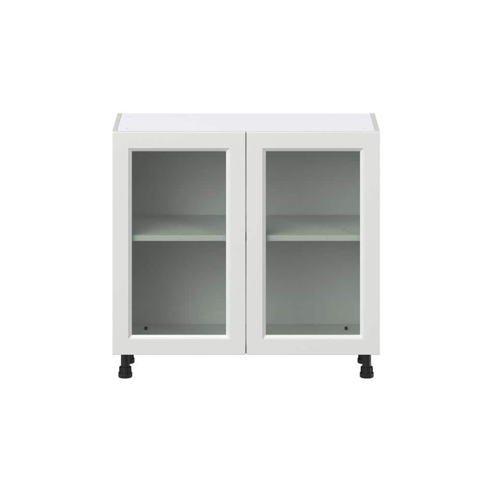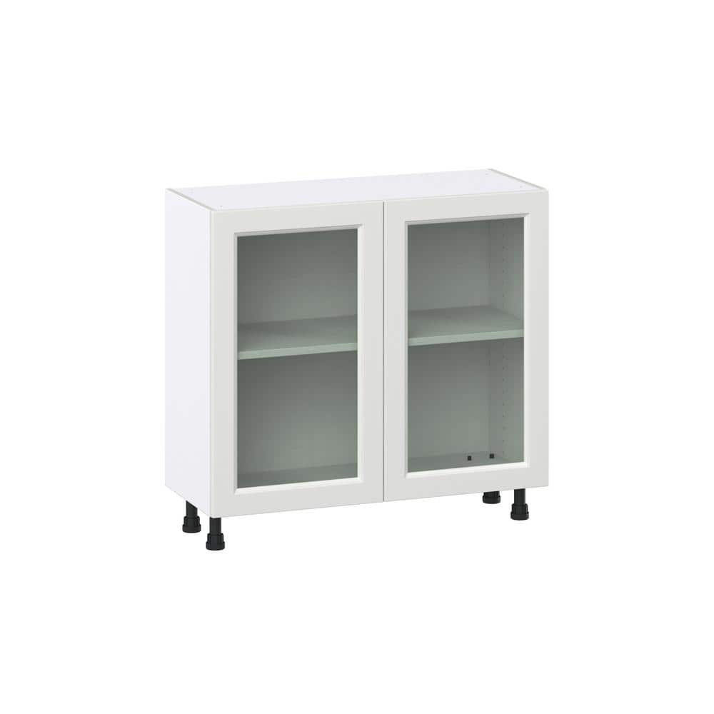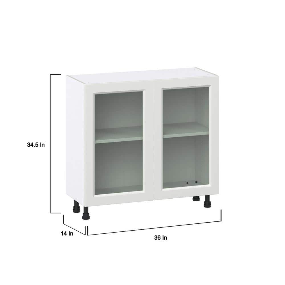 J COLLECTION 36 in. W x 14 in. D x 34.5 in. H Alton Painted White Shaker Assembled Shallow Base Kitchen Cabinet with Glass Doors