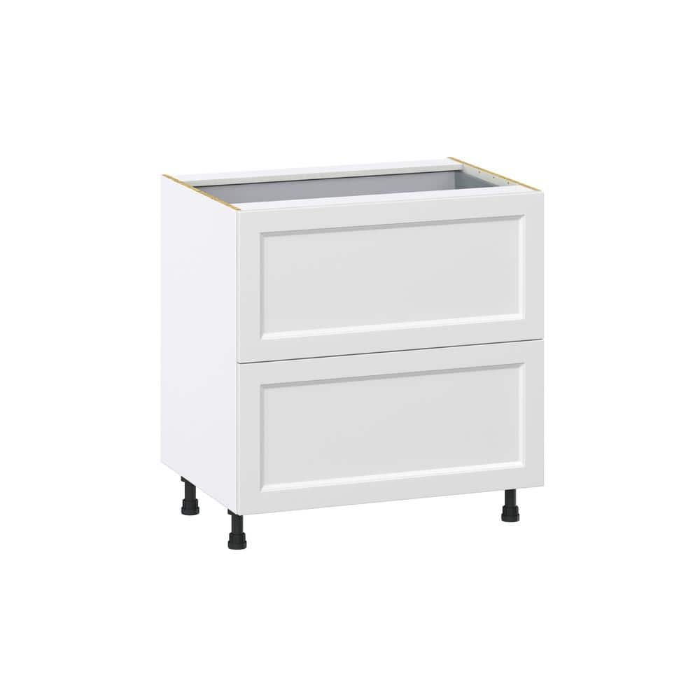 Elevate your kitchen design with the J Collection Alton Shaker Base Kitchen Cabinet, featuring a durable white painted finish and classic Shaker styling. Designed for ease of installation, it includes pre-mounted adjustable legs and smooth-gliding, soft-close drawers for a sleek and functional cooking environment.
