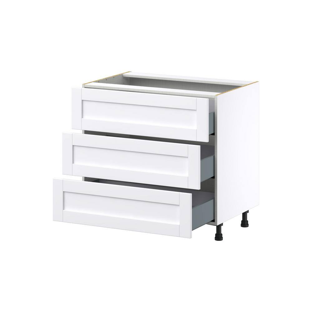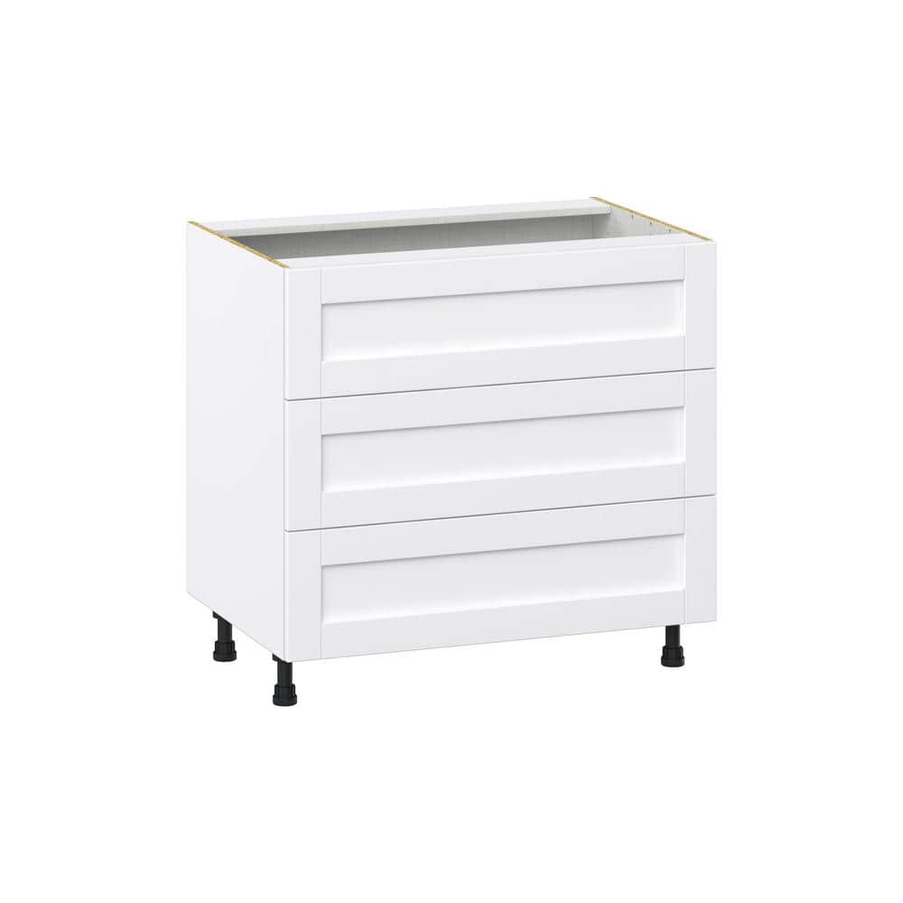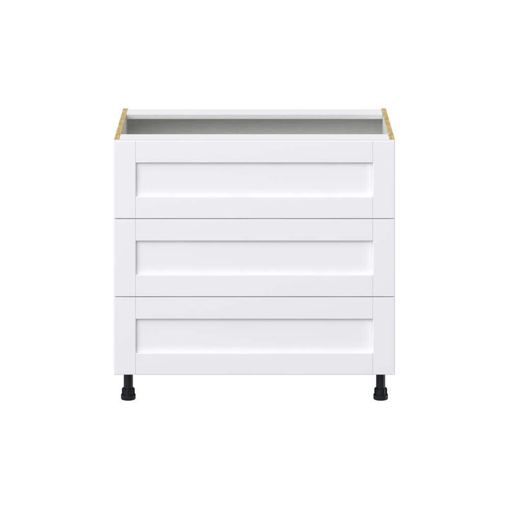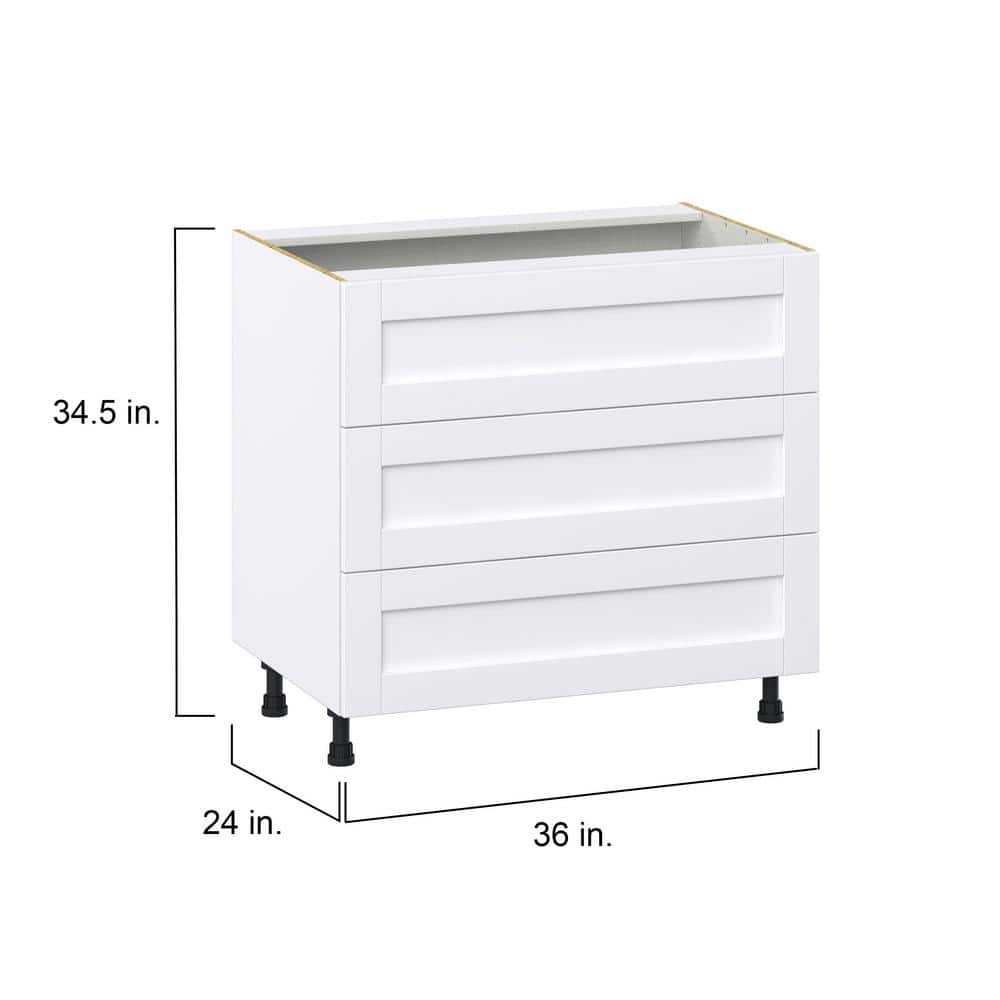 J COLLECTION Mancos Bright White Shaker Assembled Base Kitchen Cabinet for Cooktop with 3-Drawers (36 in. W x 34.5 in. H x 24 in. D)