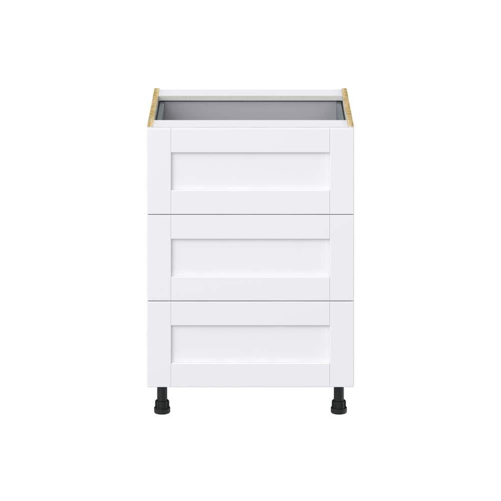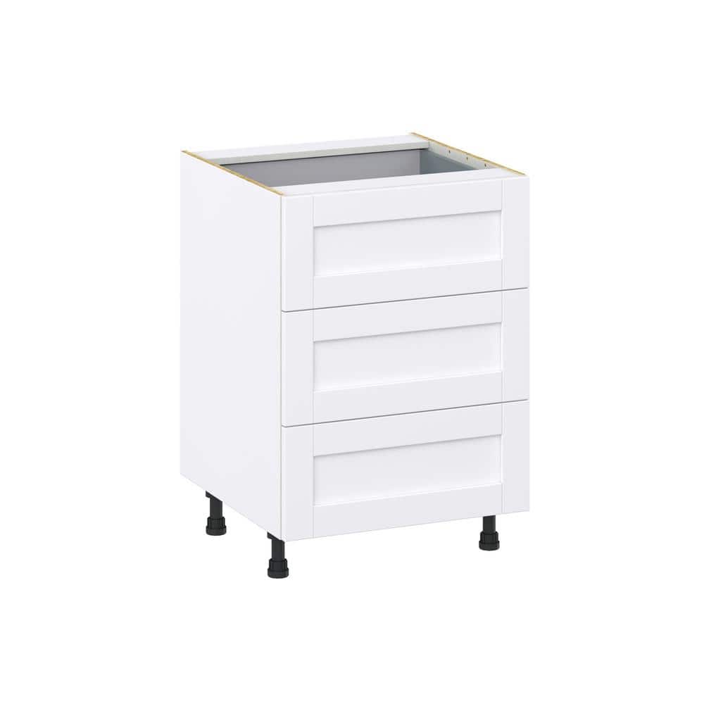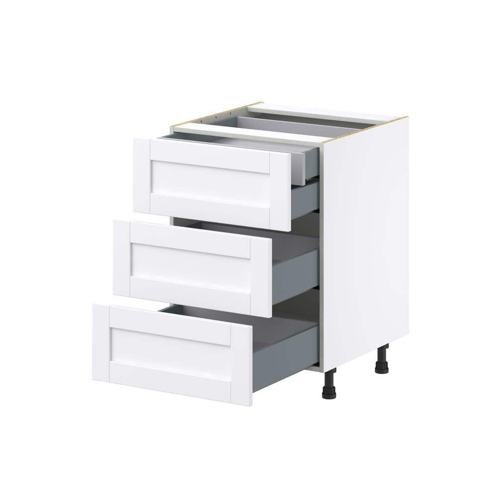 J COLLECTION Mancos Bright White Shaker Assembled Base Kitchen Cabinet with 3Drawers and 1 Inner Drawer 24 in.W x 34.5in.H x 24 in.D