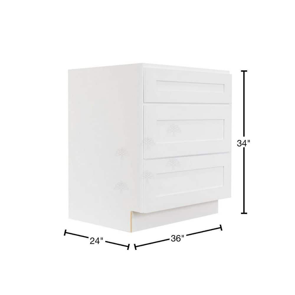 LIFEART CABINETRY Lancaster White Plywood Shaker Stock Assembled Base Drawer Kitchen Cabinet 36 in. W x 34.5 in. H x 24 in. D