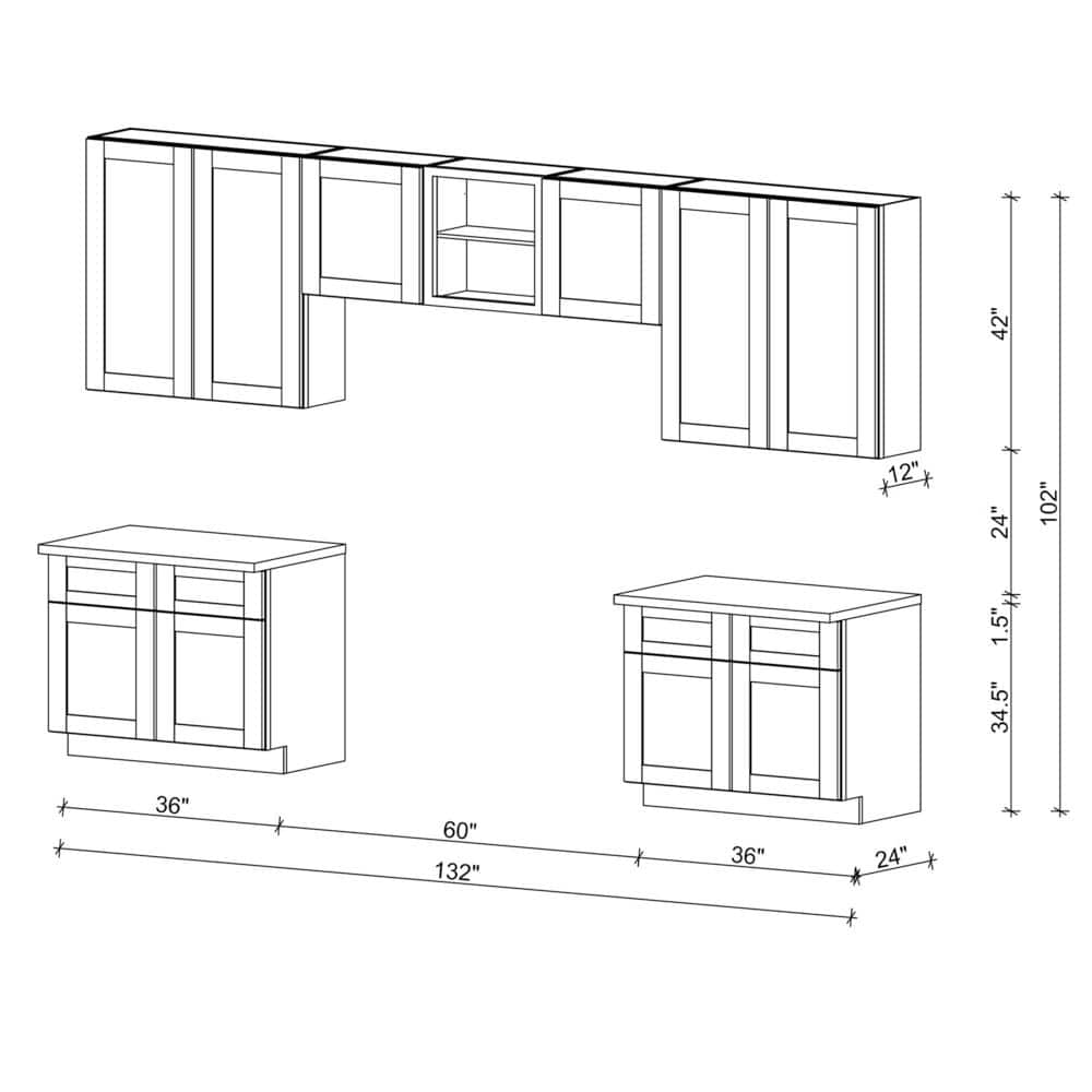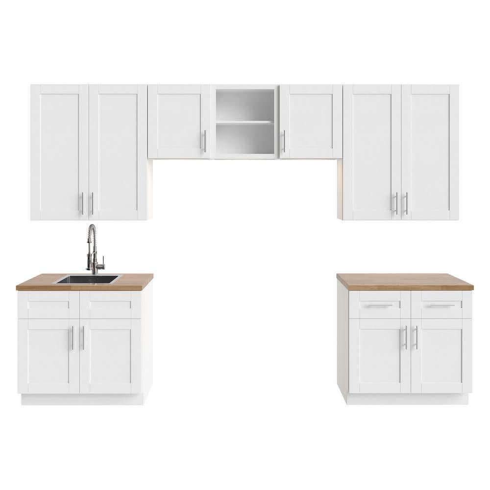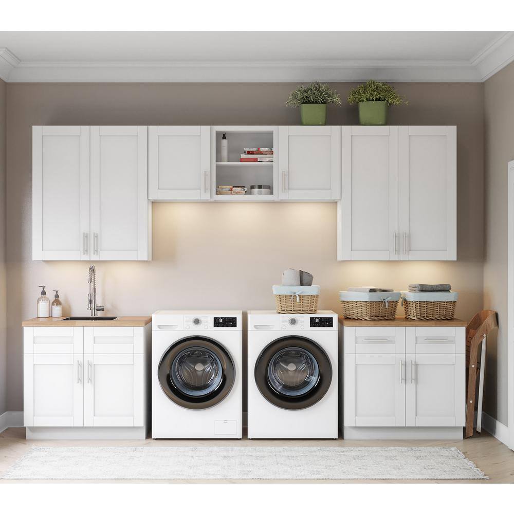 MILL'S PRIDE Richmond Verona White Plywood Shaker Ready to Assemble Base Kitchen Cabinet Laundry Room 132 in W x 24 in D x 102 in H
