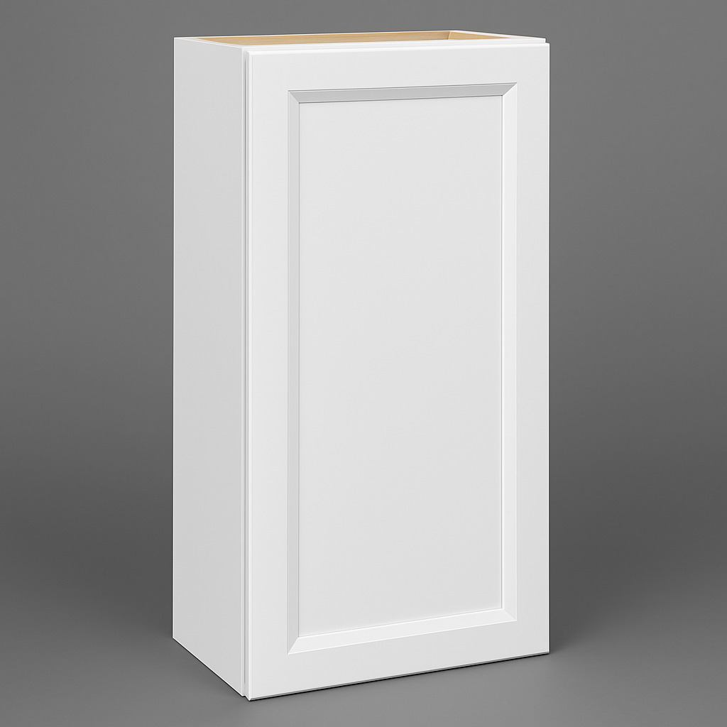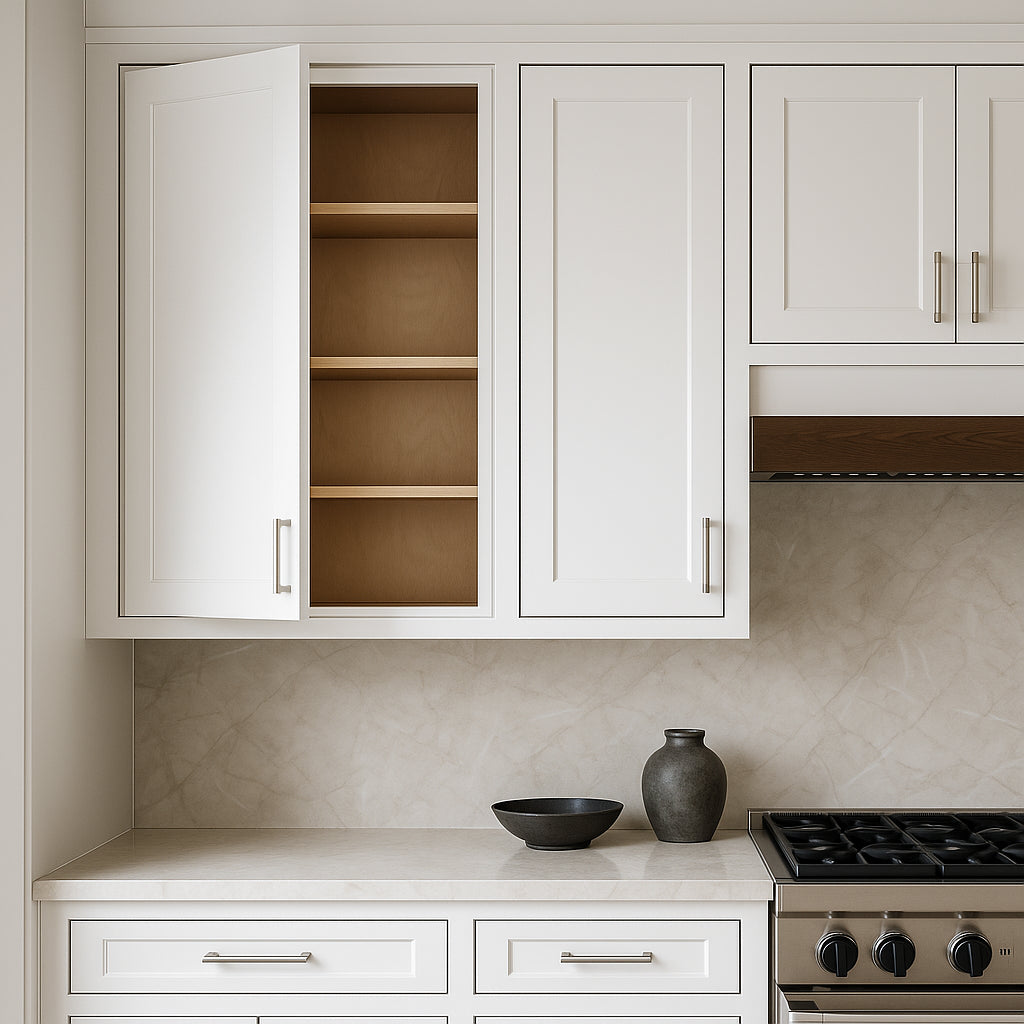• Modern Shaker Design: Sleek white finish with beveled door frames.