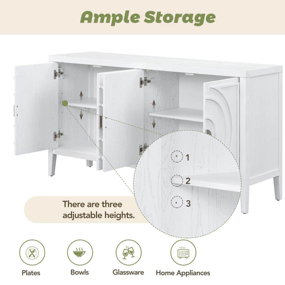 Retro 60 in. W x 15.9 in. D x 32.1 in. H White MDF Ready to Assemble Floor Base Kitchen Cabinet for Entrance Dinning