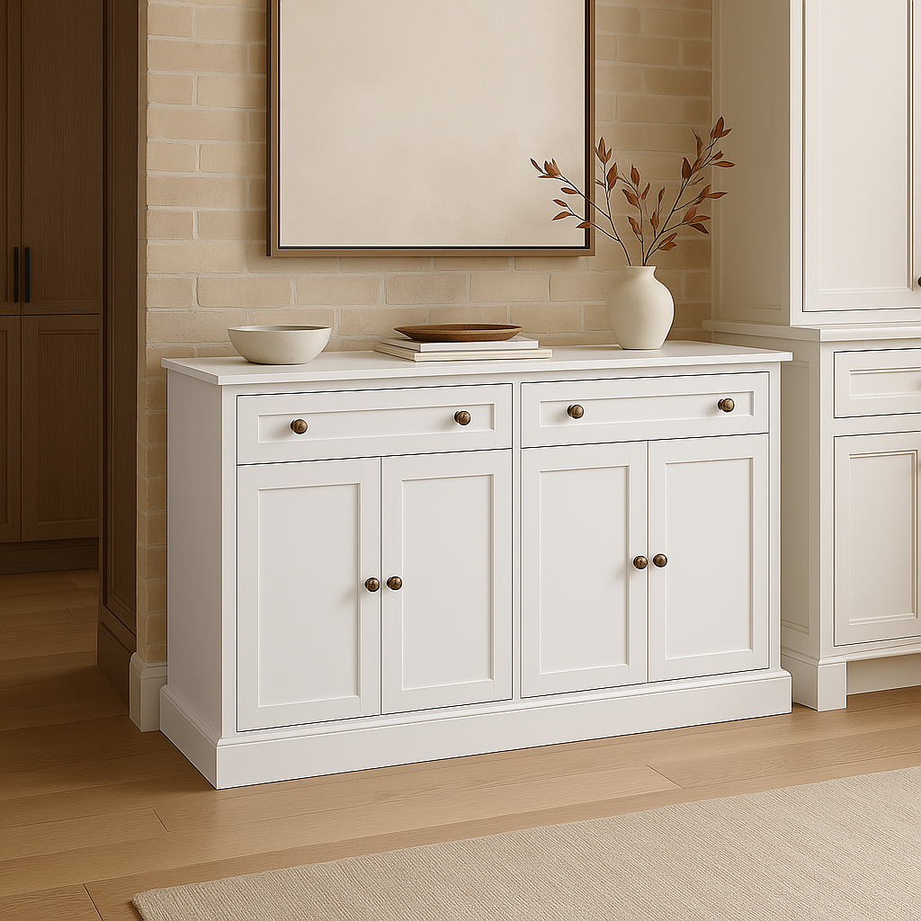 The Runesay White MDF Kitchen Cabinet Sideboard combines modern style with practical storage solutions. Featuring adjustable shelves, soft-close drawers, and a sturdy MDF construction, this sideboard is perfect for organizing kitchen or living room essentials.