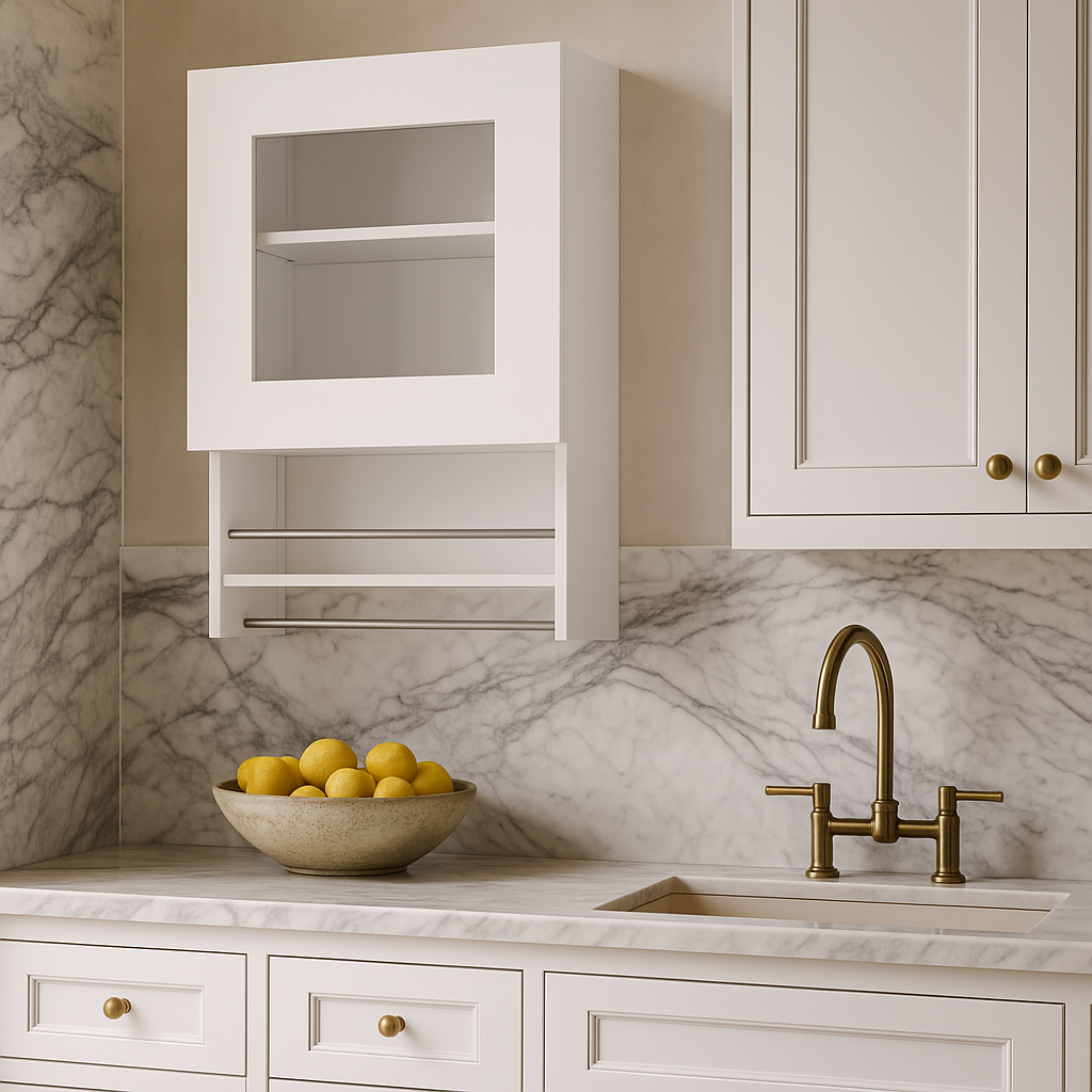 This cabinet is a masterpiece of modern design, blending sleek aesthetics with practical utility. Its glass door adds a touch of sophistication, while the integrated towel and spice racks offer unparalleled convenience. Perfect for compact spaces, it transforms kitchens and bathrooms into organized havens of style and functionality. A must-have for those who value both beauty and efficiency.