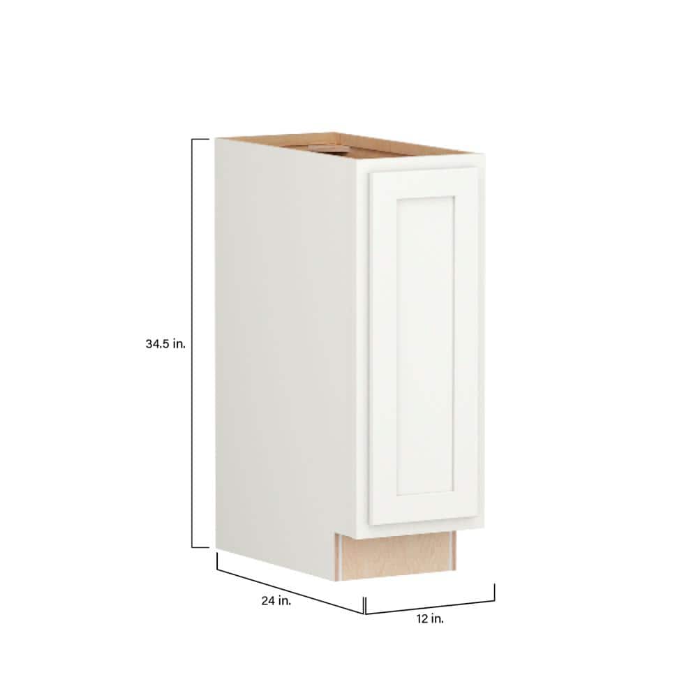 Shaker Partial Overlay 12 in W x 24 in D x 34.5 in H Plywood Assembled Full Height Base Kitchen Cabinet in Linen White