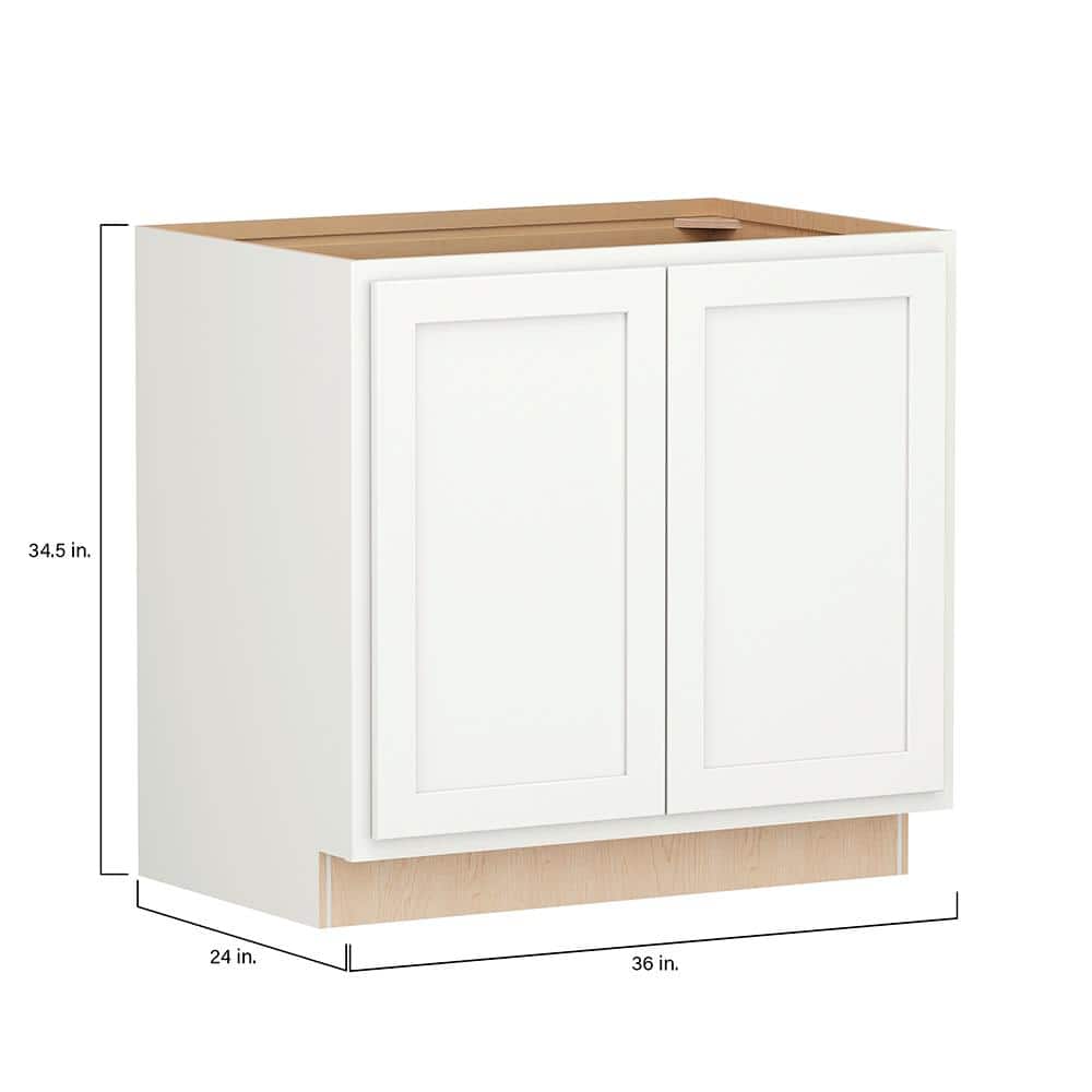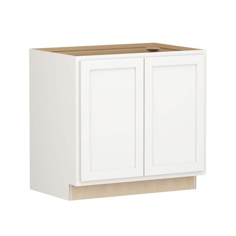 Shaker Partial Overlay 36 in W x 24 in D x 34.5 in H Plywood Assembled Full Height Base Kitchen Cabinet in Linen White