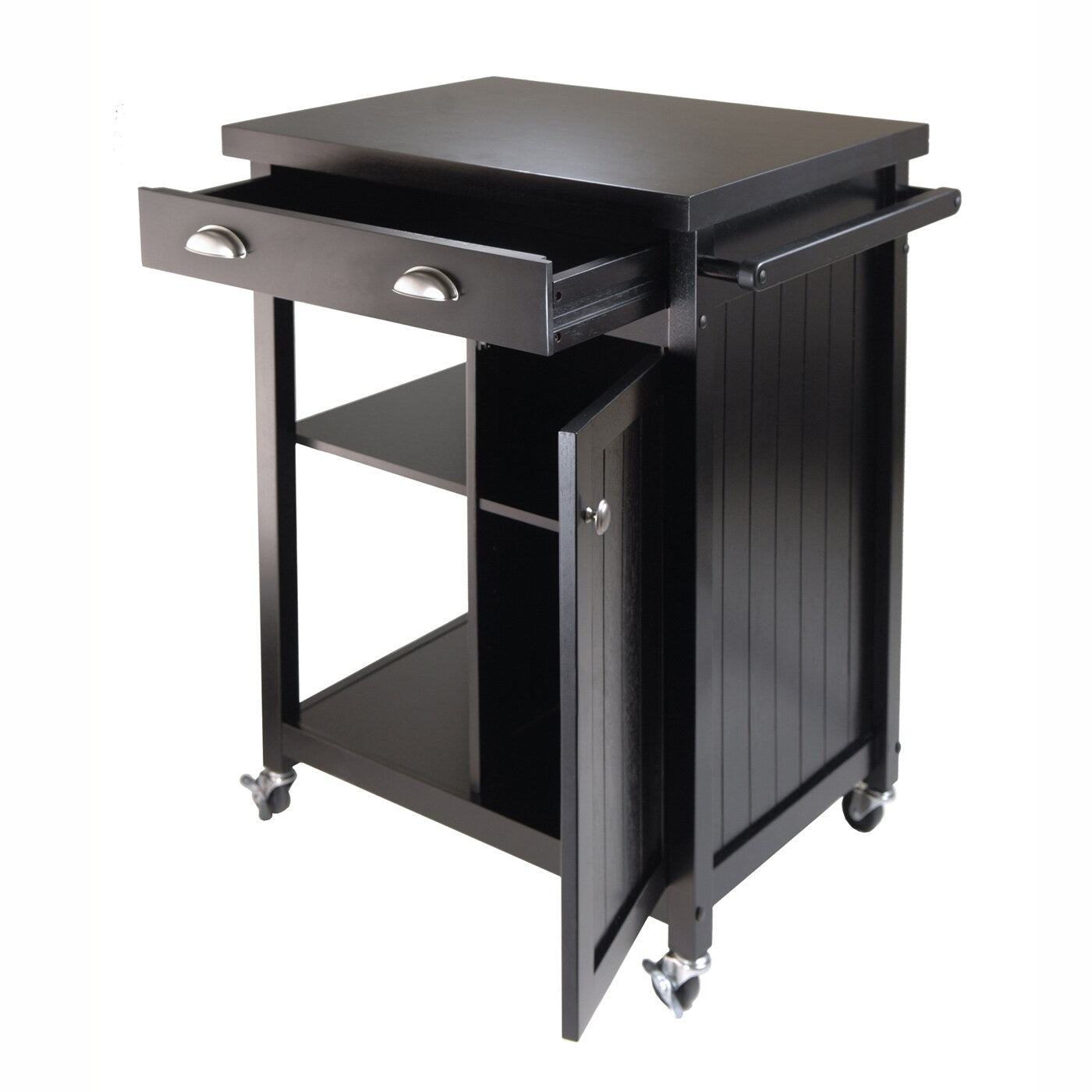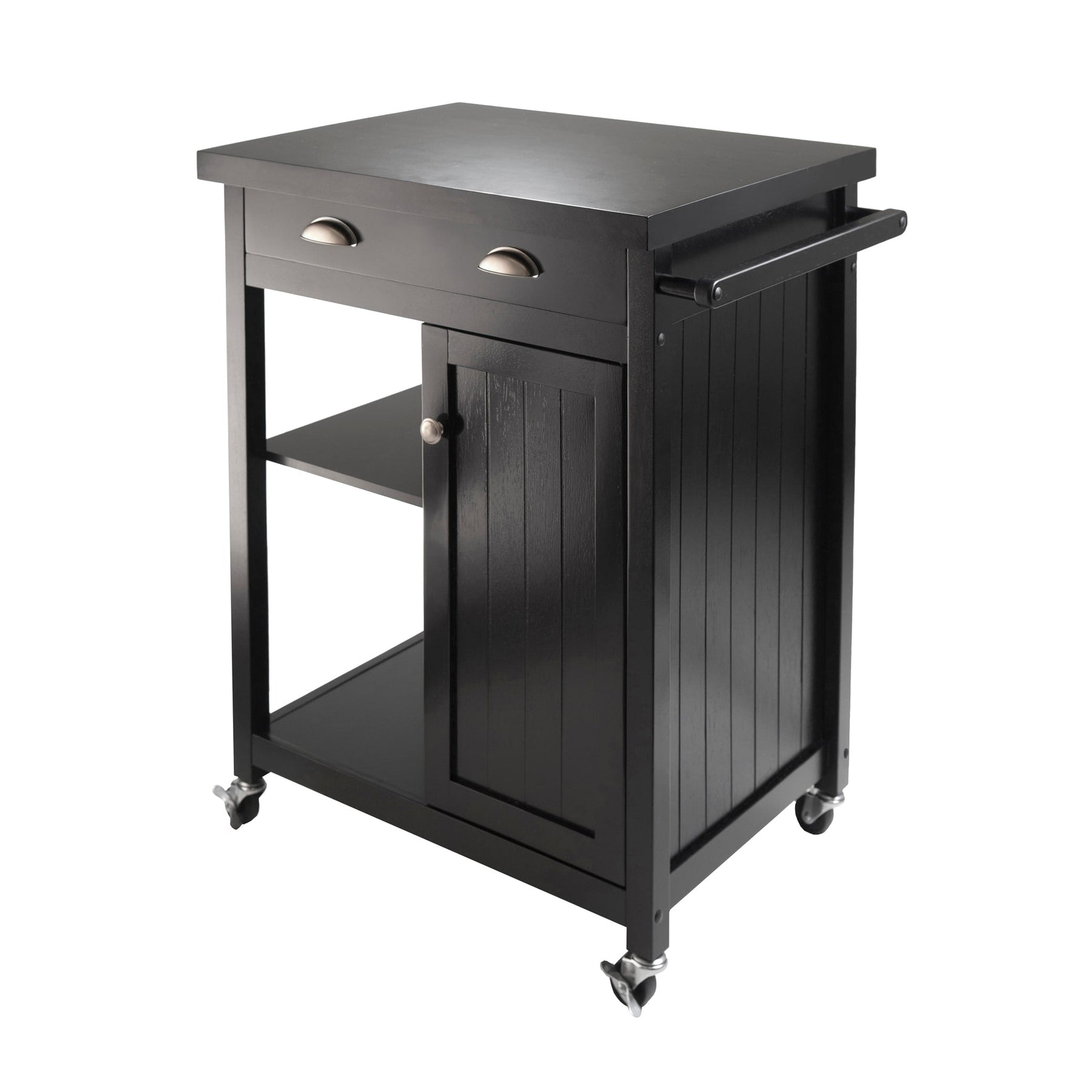 Winsome Wood Black Composite Base with Composite Wood Top Rolling Kitchen Cart (19.37-in x 27.76-in x 34-in)