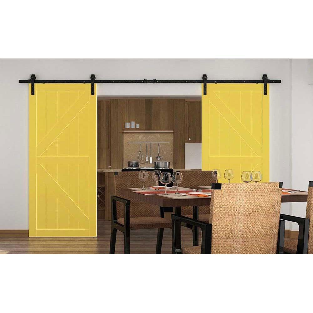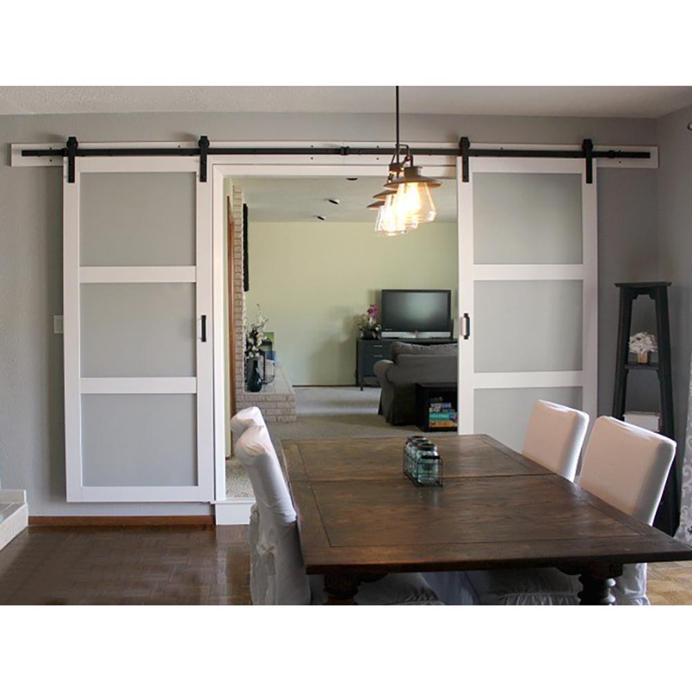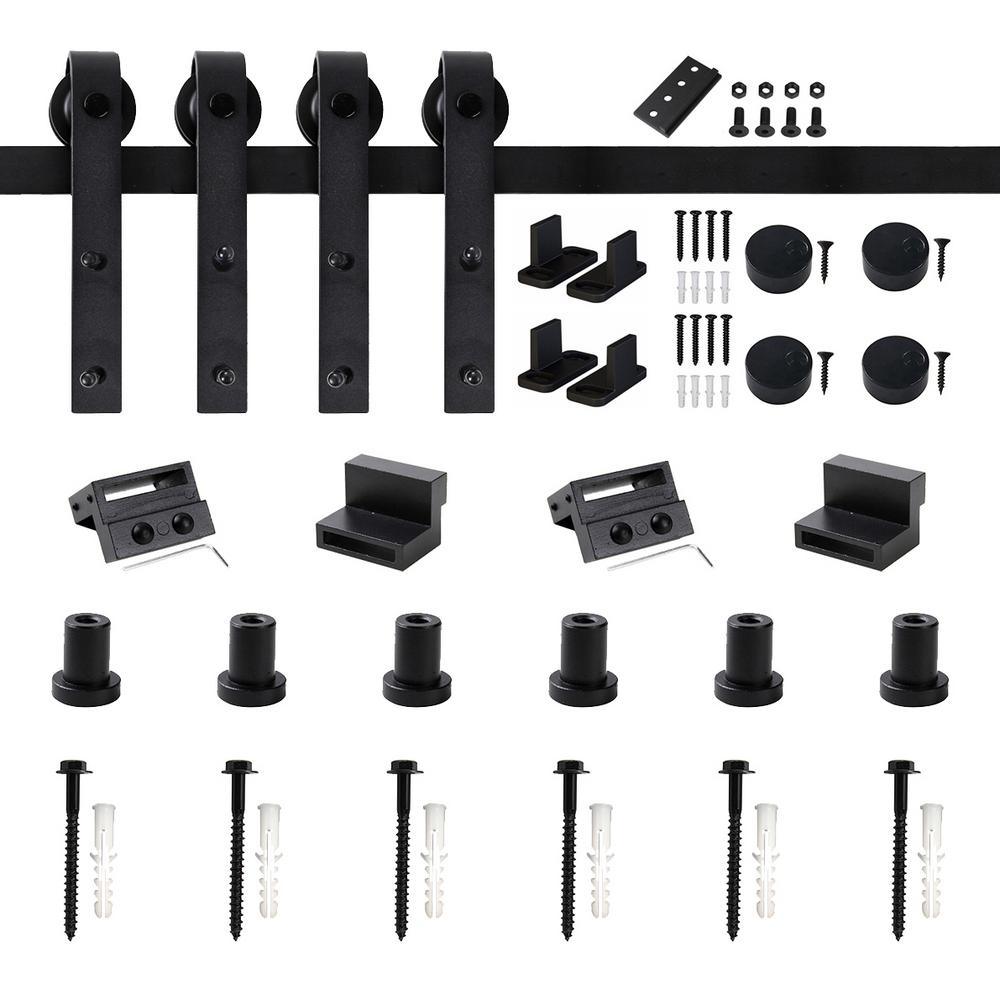 Keep your barn doors rolling easily and quietly with this WINSOON 90 in. Frosted Black Sliding Barn Door Hardware Track Kit. Balanced hangers keep the weight even on the wheels for smooth operation. A precision, solid carbon steel extruded track adds durability and guarantees that the doors will not jump track. Includes door stoppers to set the exact sliding range. The strong floor guide stabilizes door movement. Kit is for double doors 1-3/8 in. and 1-3/4 in. thick, up to 230 lbs. Doors are not included.