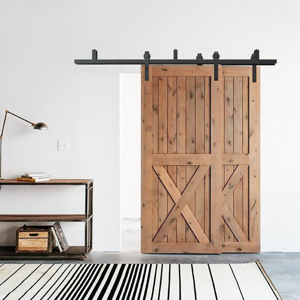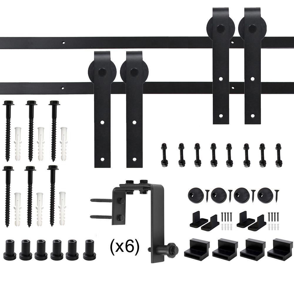 7.5 ft./90 in. Powder Coated Black Heavy-Duty Bypass Double Door Sliding Barn Door Hardware Classic Design Roller