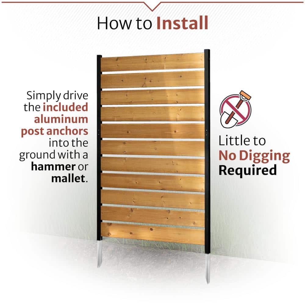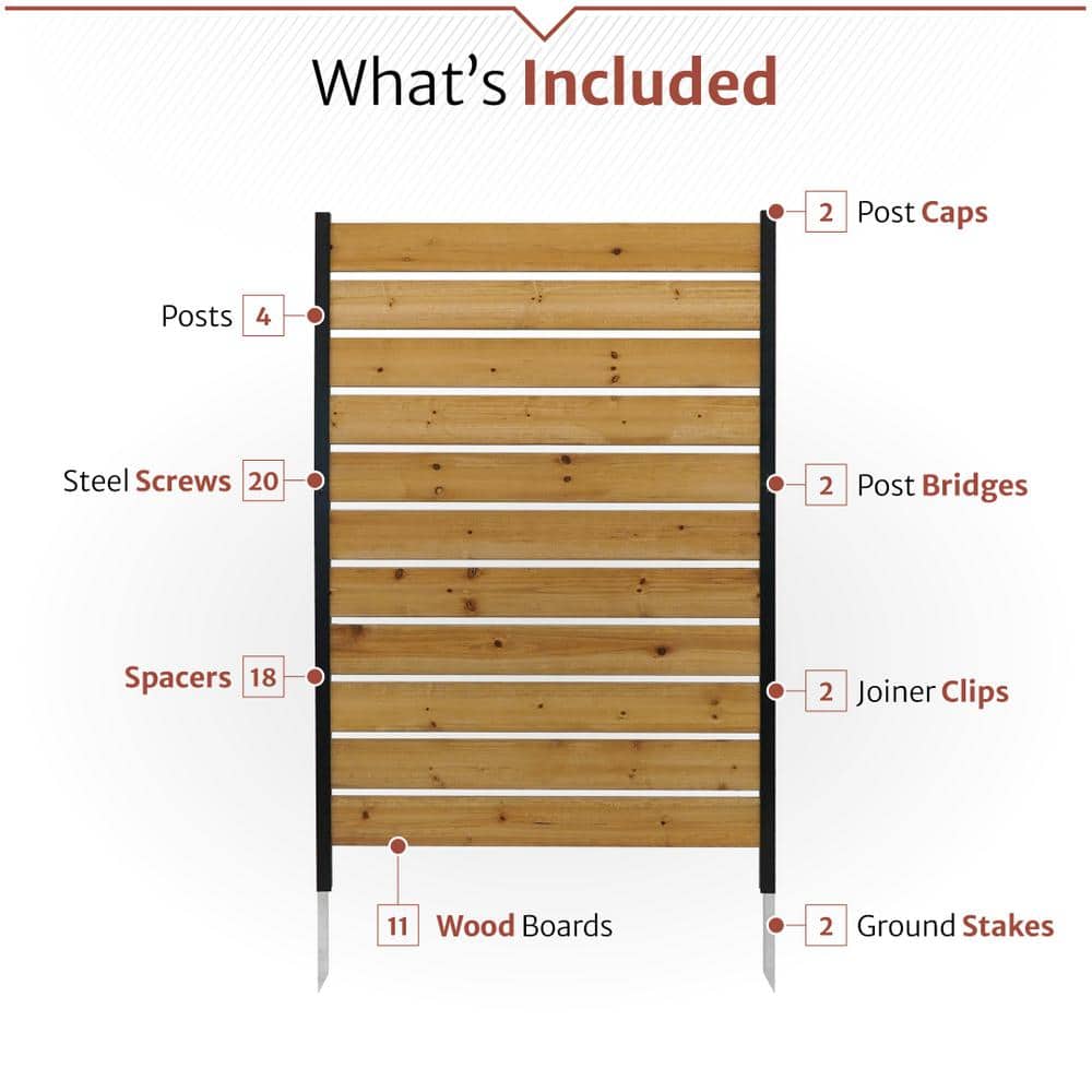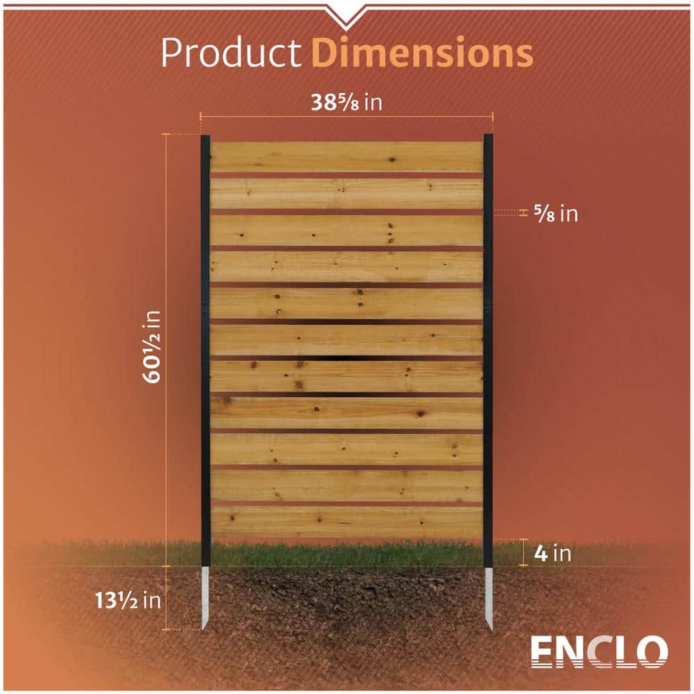 The Enclo Privacy Screens Concord Cedar Wood Slatted Panel is a perfect blend of functionality and style for your outdoor spaces. Measuring 5 ft. in height and 3.2 ft. in width, it effectively hides unsightly outdoor items like trash bins and A/C units, while complementing your garden or patio decor. Made from FSC certified real wood, this easy-to-install panel offers a no-dig setup, ensuring a hassle-free installation process.