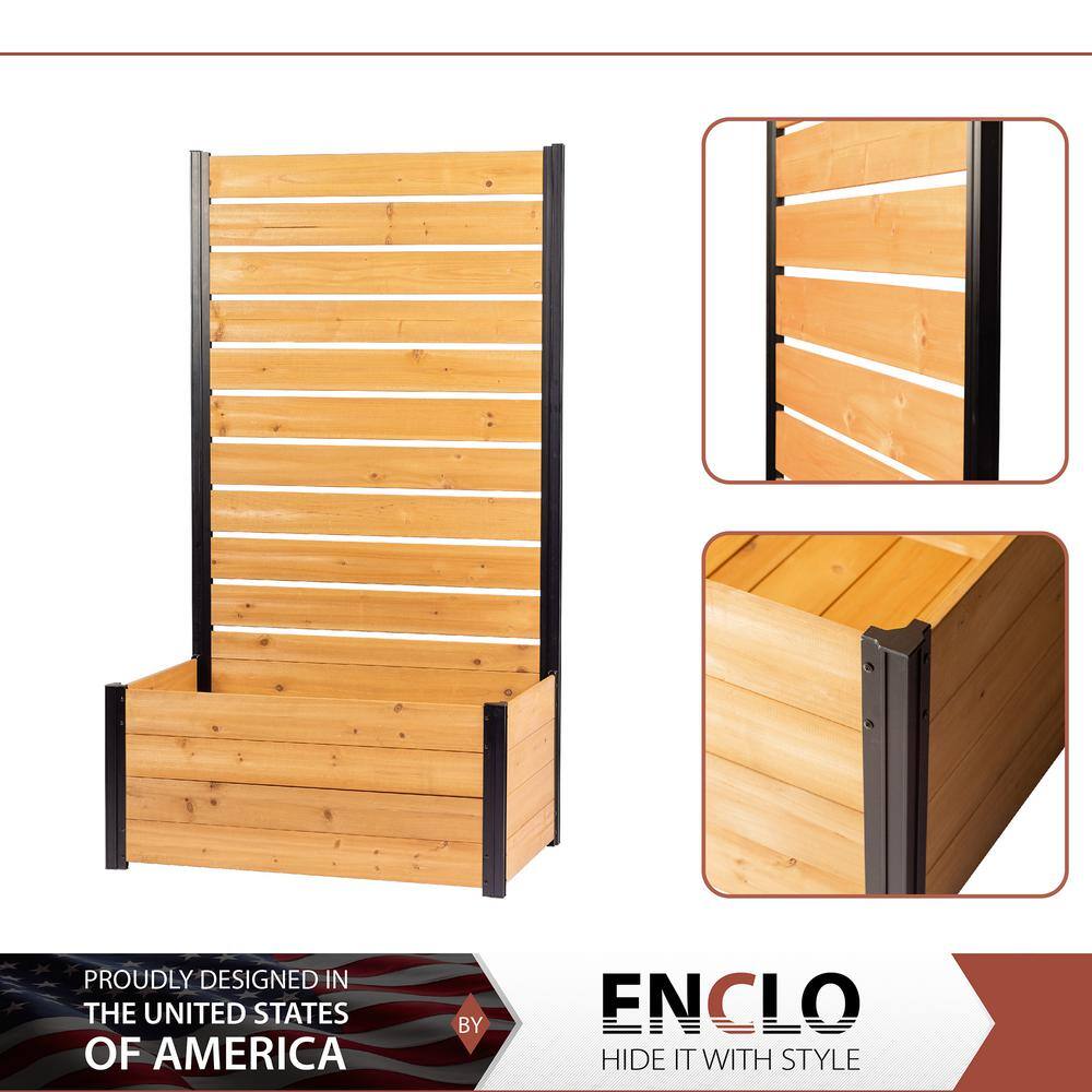 Immerse yourself in the symphony of nature with the Enclo Privacy Screens Cedar Fence and Planter. Its rich cedar tones and slatted design create a visually calming effect, turning your patio into a serene retreat. The thoughtfully integrated planter invites versatility, from lush greenery to vibrant flowers, enveloping your space with life. This fence is not merely a divider but a statement piece, the gateway to luxurious outdoor living.