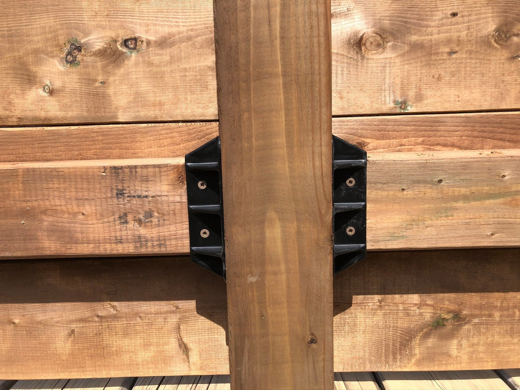 Transform your outdoor landscape with these subtle yet essential fence brackets, a hidden detail that enhances both function and form. The sleek black finish effortlessly blends into wood textures, reinforcing without stealing the spotlight. Use these brackets to create a harmonious and robust boundary that frames your garden or patio oasis with understated elegance. Essential for those seeking to blend durability with design, they embody the sophistication of thoughtful outdoor decor.