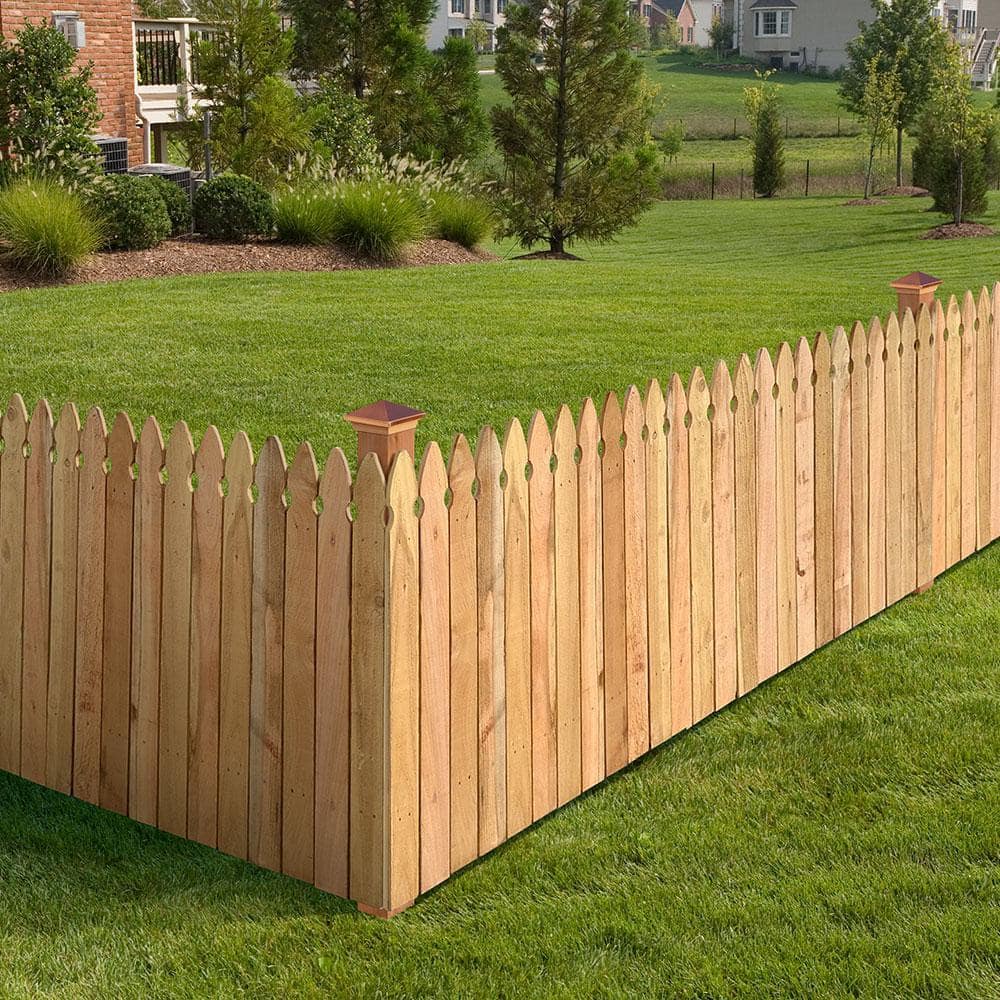 Infuse your garden with classic charm and sophistication using the Outdoor Essentials Western Red Cedar Privacy Fence Panel Kit. Each panel harmonizes with nature, offering a beautiful rustic aesthetic that seamlessly integrates with lush landscapes. The French Gothic pickets serve as a design statement, enhancing your outdoor space's allure. Style this wood fencing along pathways or as a backdrop to blossoming flower beds, and experience the essence of luxurious estate living in your everyday surroundings.