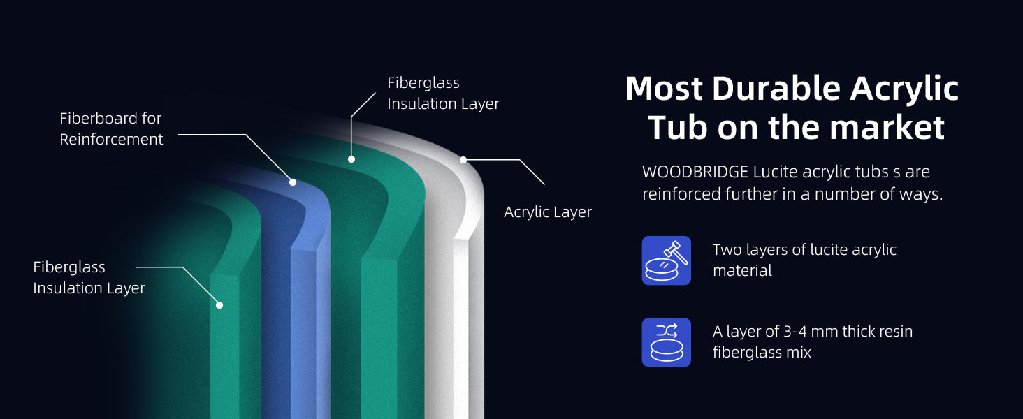 • Durable Lucite Acrylic: Double‑wall construction reinforced with ASHLAND resin and fiberglass for strength and heat retention.