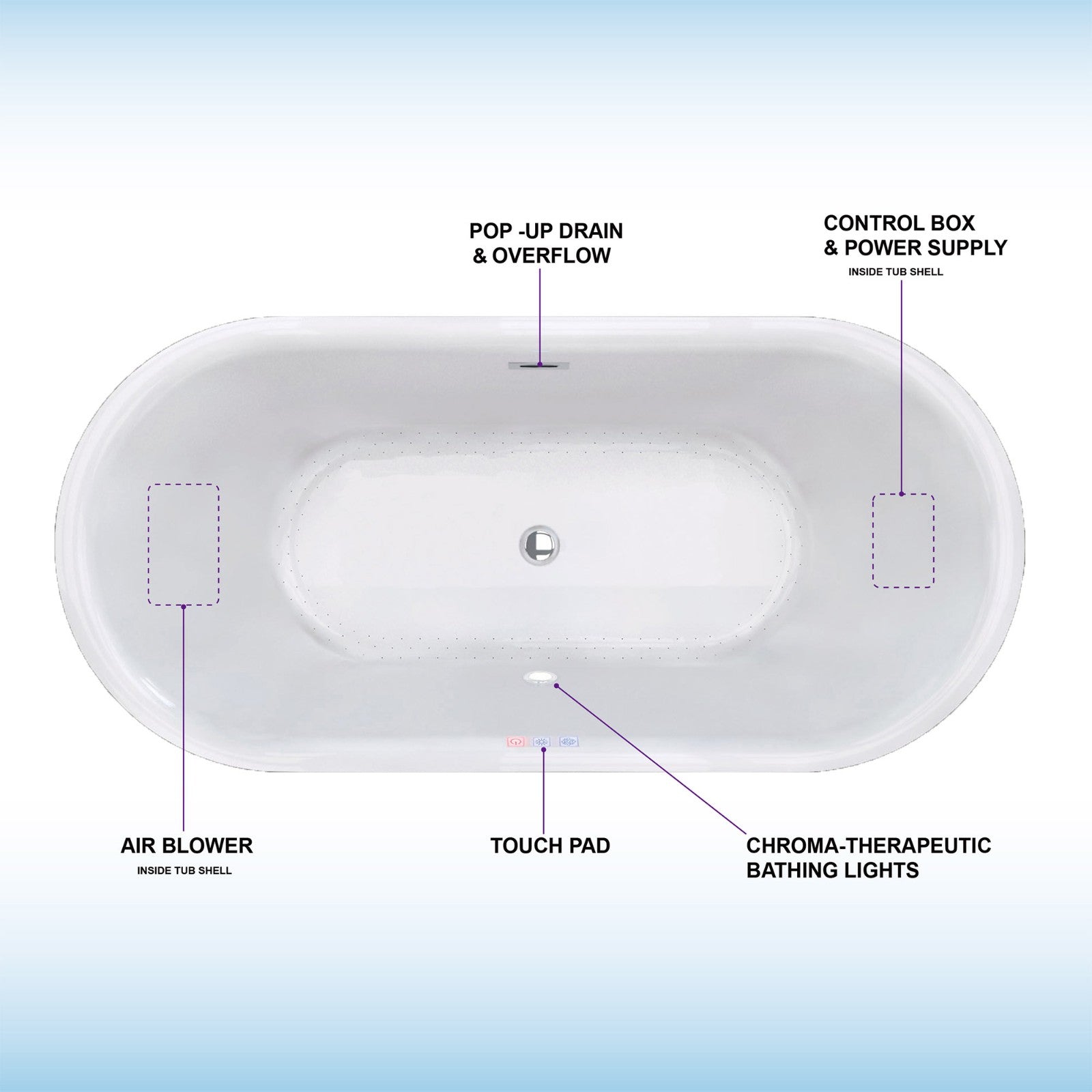 59 in. Freestanding Acrylic Air Bubble Bathtub