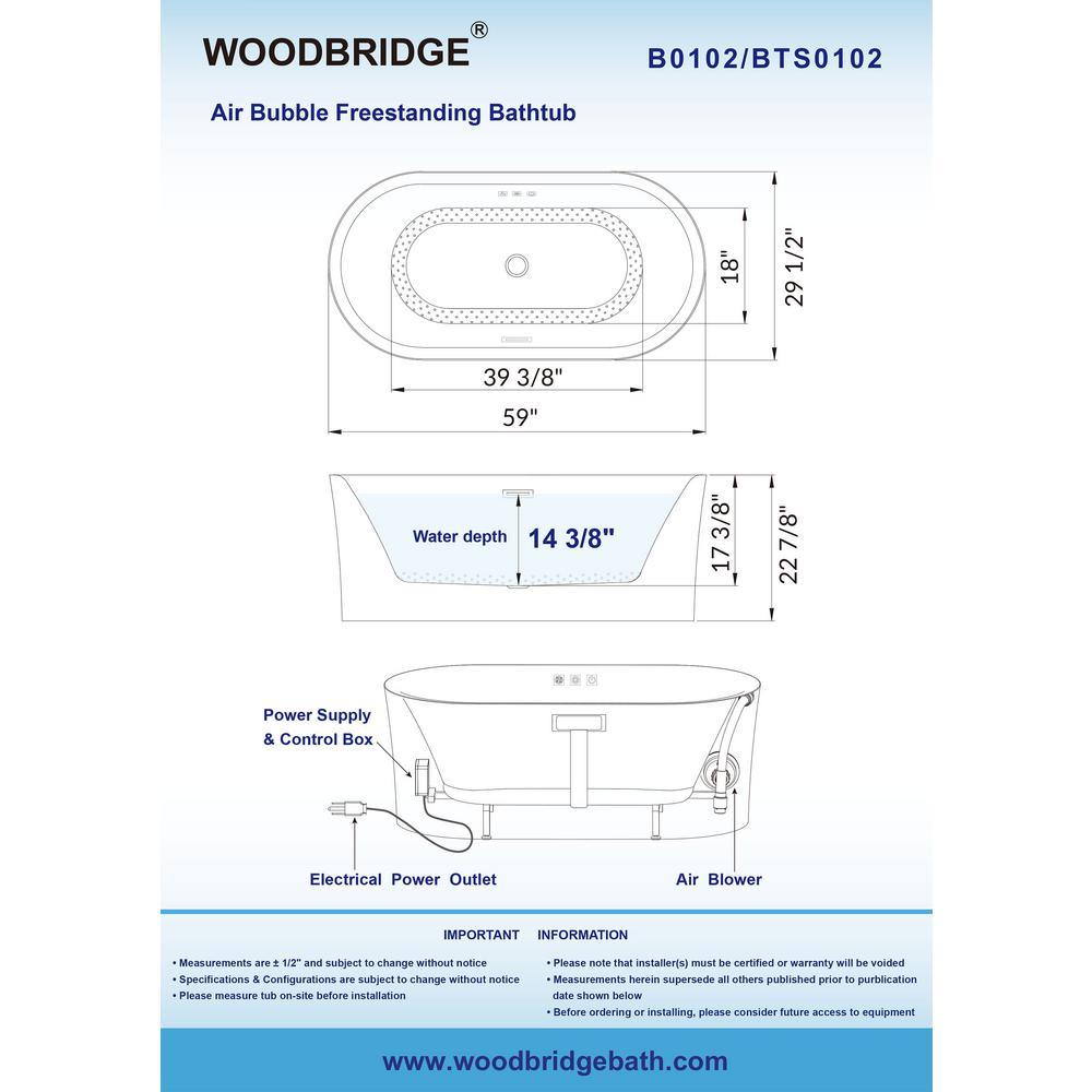 Model Name WOODBRIDGE 59" Contemporary Freestanding Acrylic Air Bubble Soaking Bathtub