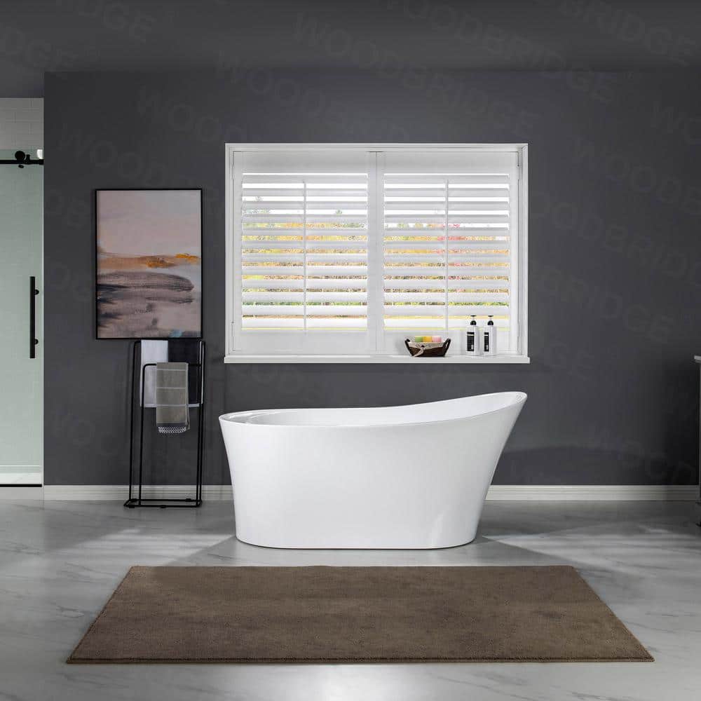 WOODBRIDGE Wayne 67 in. Acrylic Freestanding Single Slipper Soaking Bathtub with Drain and Overflow Included in White