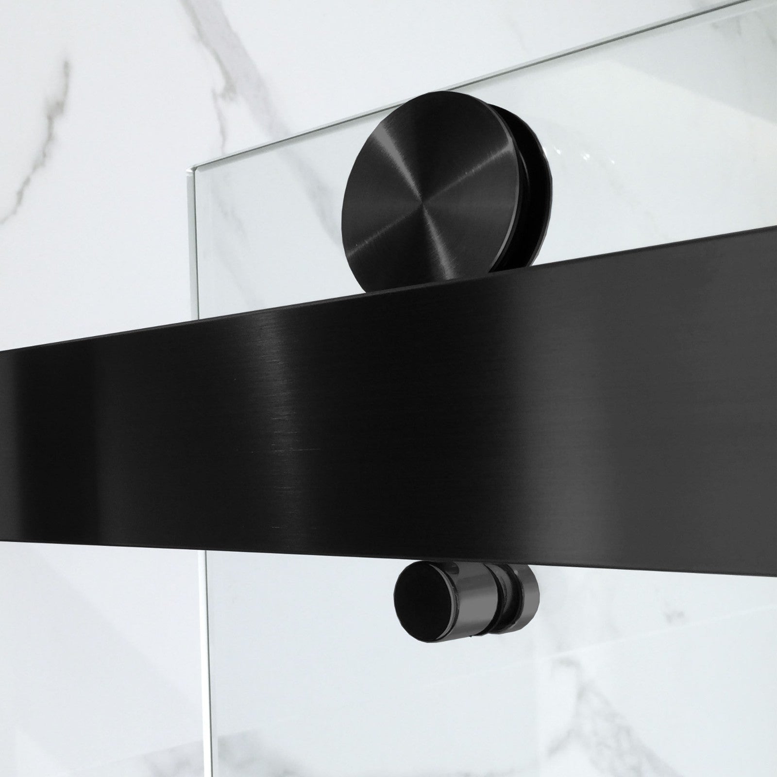 A sleek frameless sliding shower door designed for 44–48-inch openings and 76-inch height, finished in brushed nickel. Features shatter retention tempered glass and smooth stainless-steel rollers for quiet, effortless operation.