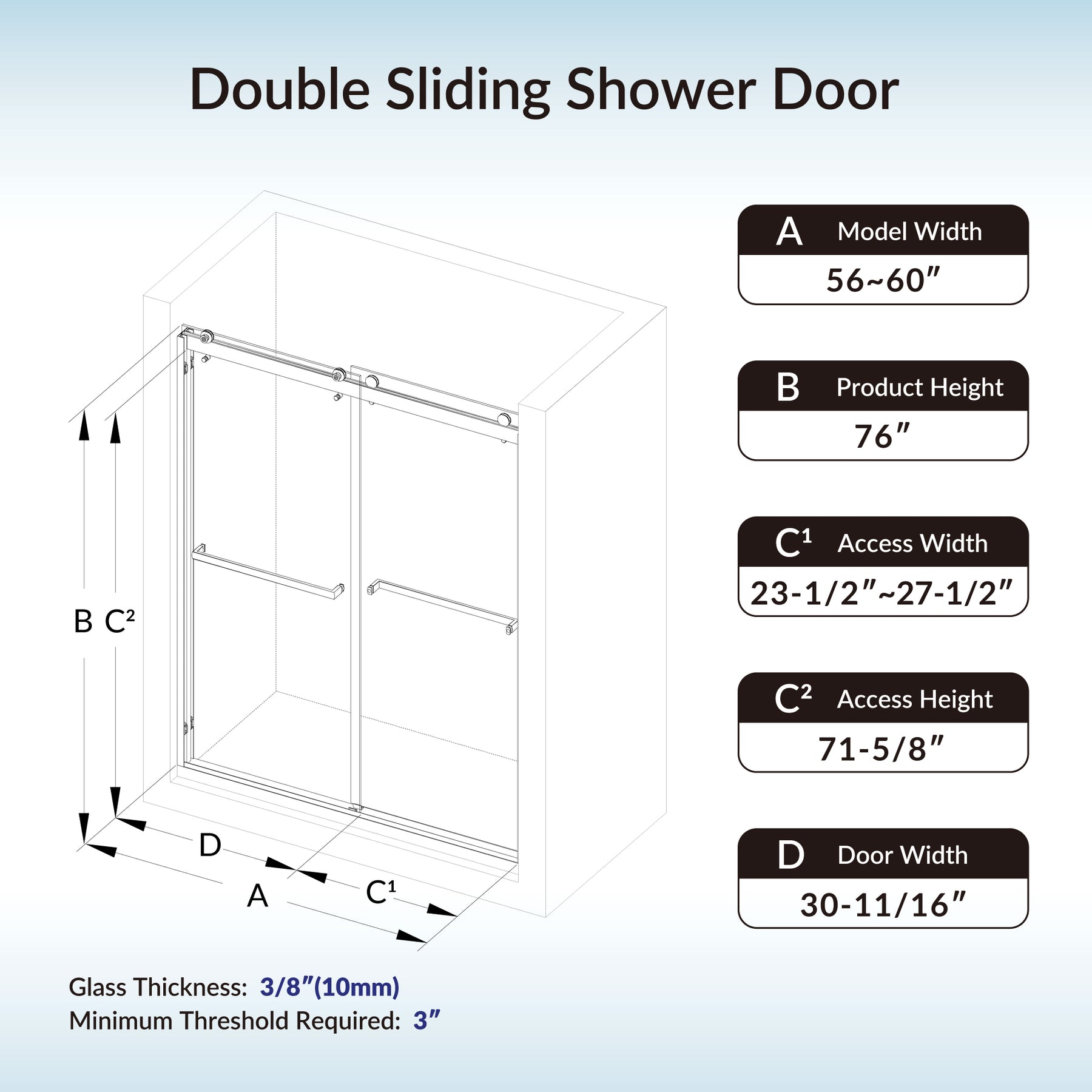 Frameless Double Sliding Shower Door, 56–60 in. W x 76 in. H