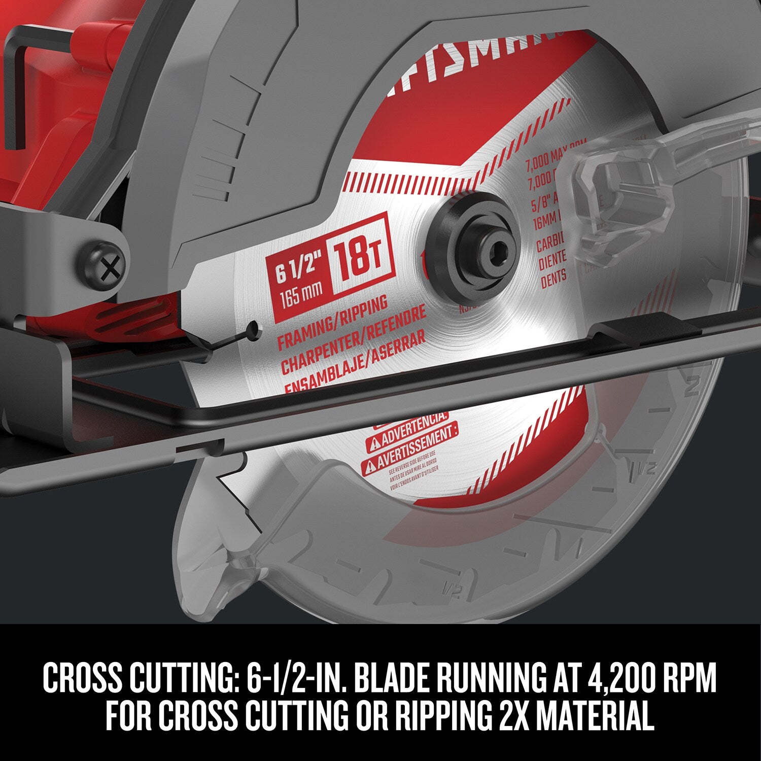Fast Cutting: 6-1/2-in saw runs up to 4,000 RPM for quick cross cuts and ripping