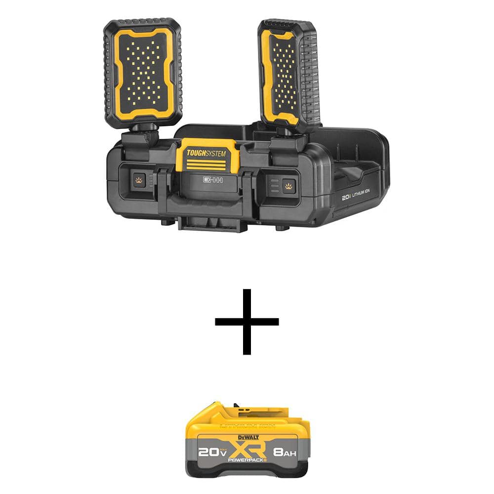 DEWALT Tough System 2.0 Flex Volt 20V/60V Lithium-Ion Cordless/Corded 4000 Lumen LED Adjustable Panel Work Light 8Ah Battery