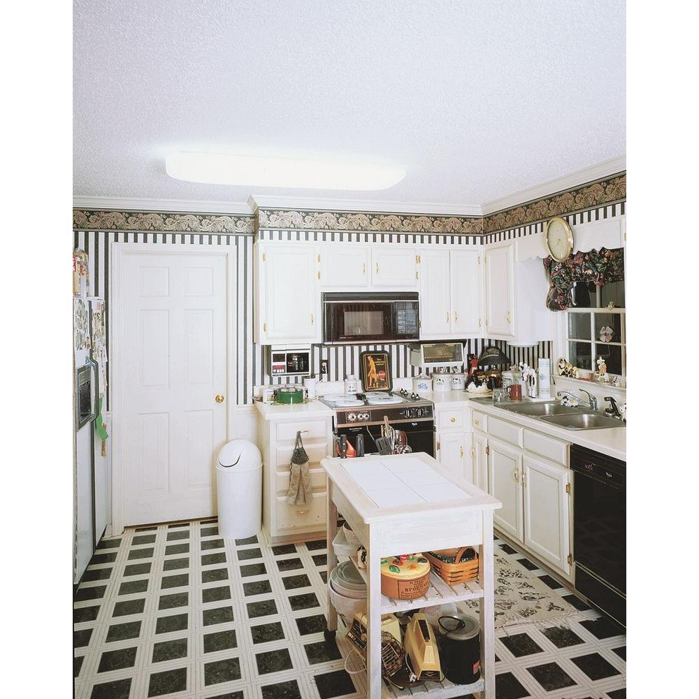 The Lithonia Lighting 2-Light Ceiling Fluorescent Light features a sleek, contoured design. This light is ideal for use in kitchens, office areas and closets. This light provides general illumination in residential and light commercial areas.