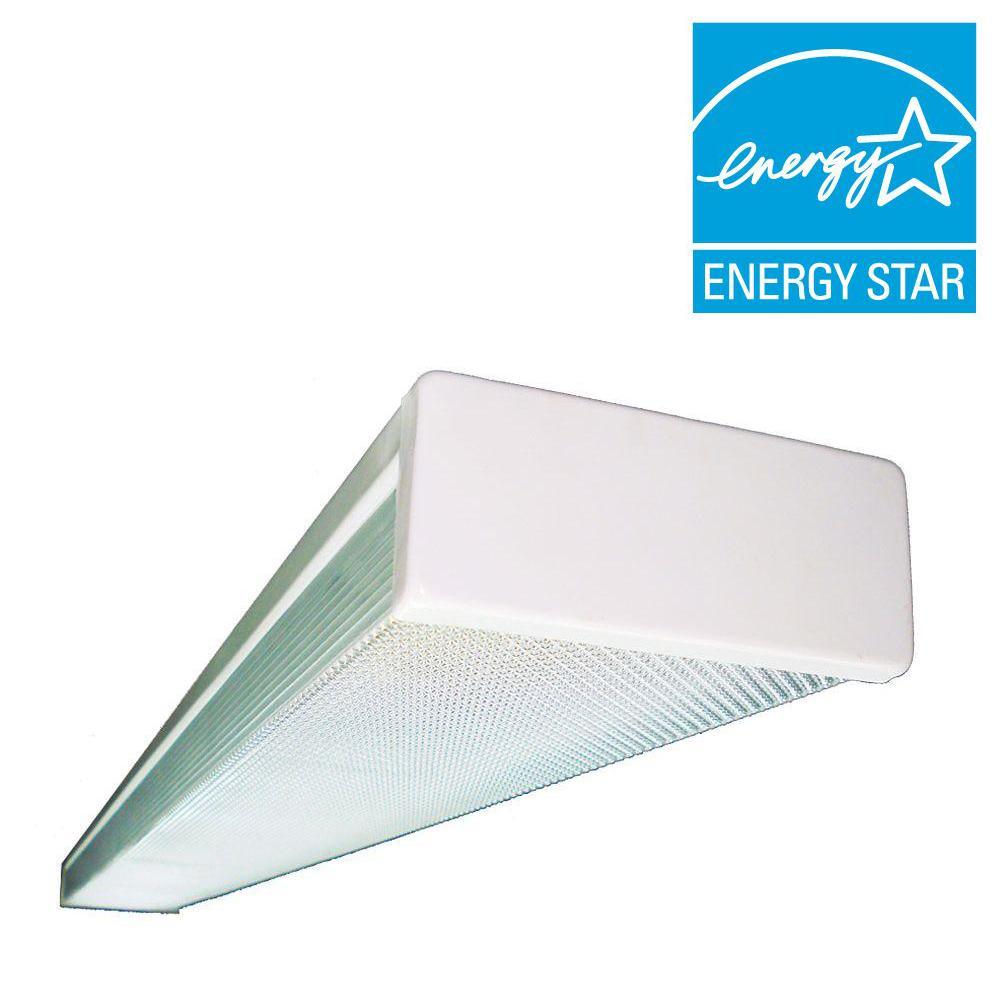 This sturdy 2-Light 32-Watt T8 wraparound is manufactured with 20-Gauge steel and a clear prismatic acrylic lens. Features 120-Volt energy-saving electronic ballast and an acrylic lens that blocks 80% of UV at 400 nm. Easy surface mount installation.