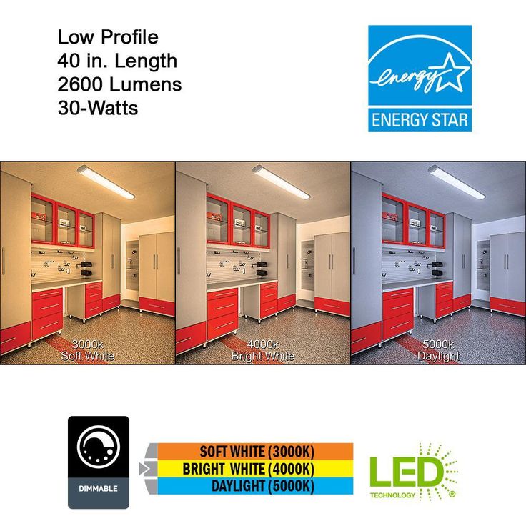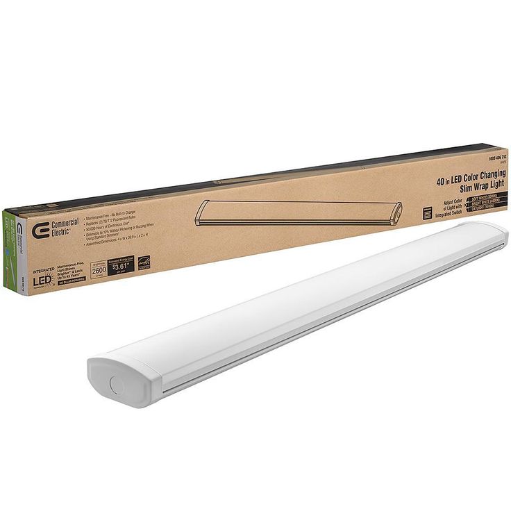 Commercial Electric's Low Profile 40 in. Integrated LED Wraparound Ceiling Light is designed to replace outdated T8 T12 fluorescent light with a high quality energy-efficient LED fixture. Choose between (3) color temperatures of light output: 3000K Soft White, 4000K Bright White or 5000K Daylight by using a toggle switch on back of the fixture. It emits 2600 Lumens of brightness with premium LEDs using only 30-Watts of electricity. This fixture is lightweight, easy to install and maintenance free with no bulbs to replace. Ideal applications: laundry room, closet, walk-in pantry, garage, basement, craft room, storage or utility room, work shop or office.