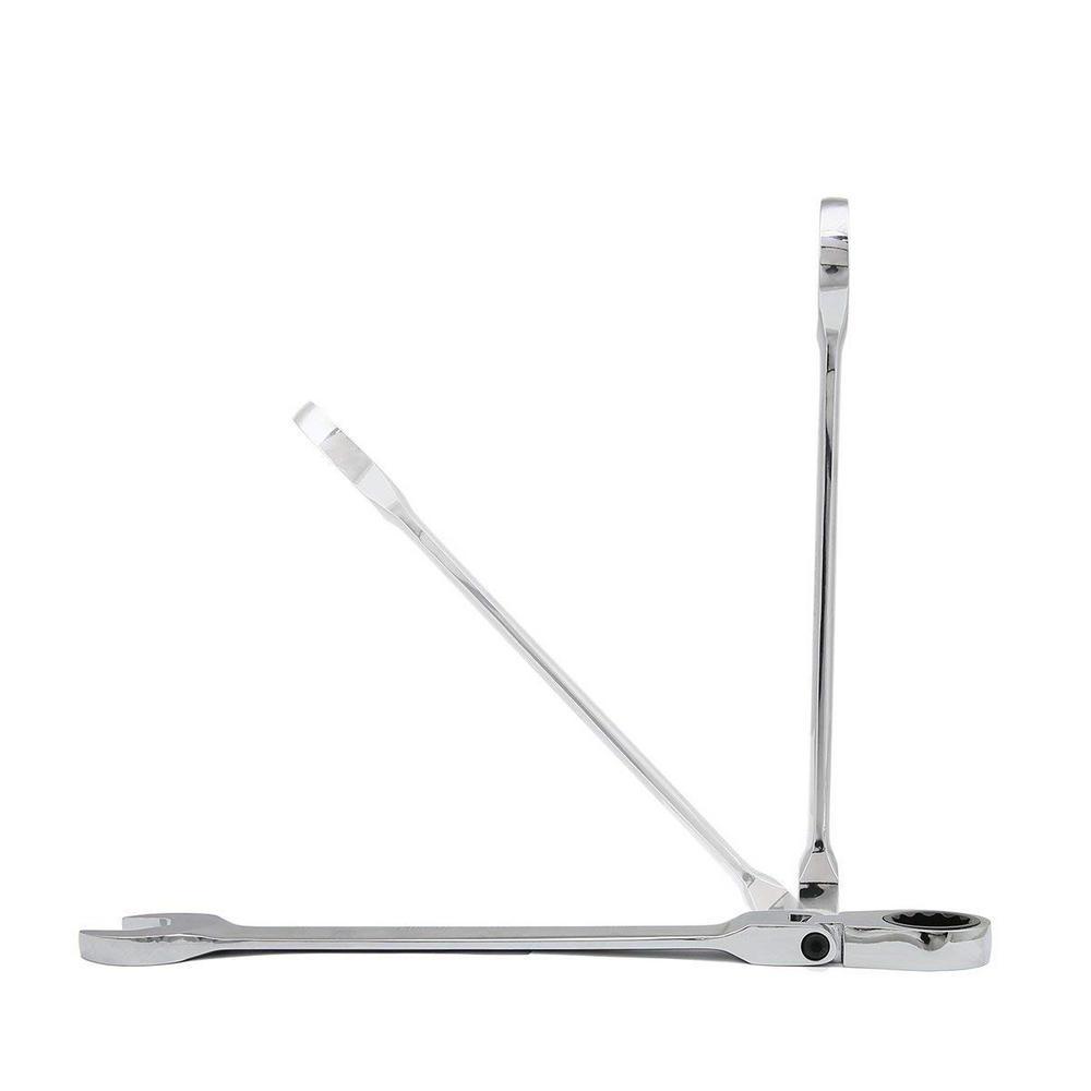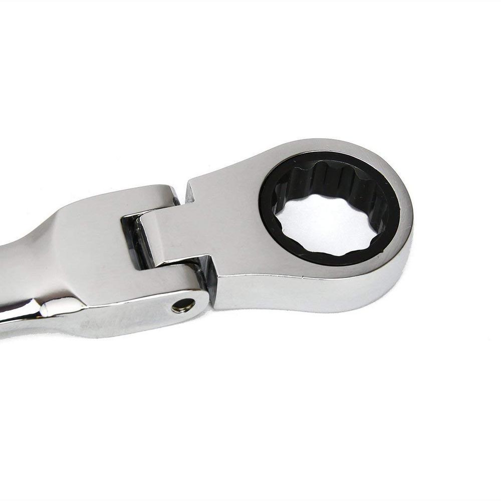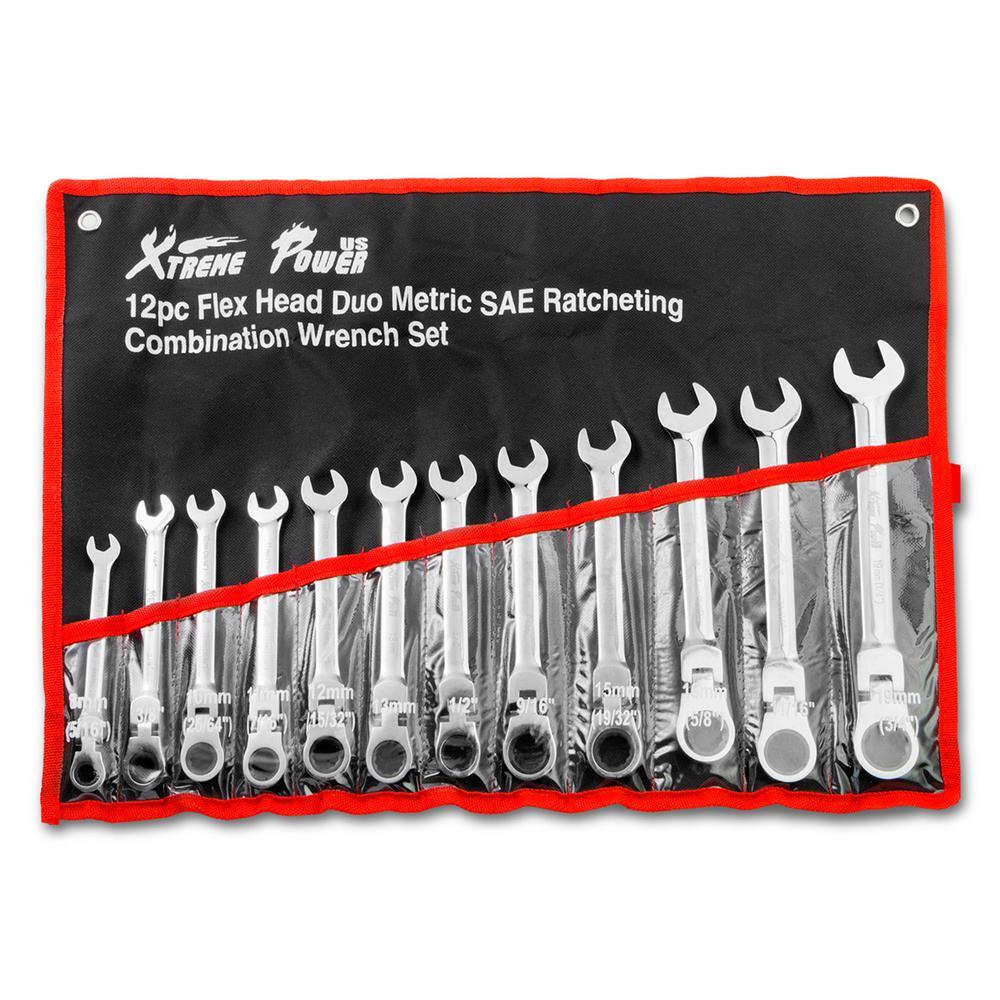 • Set includes a collection of 12 most commonly used flex-head SAE and MM ratcheting wrenches 8 mm (5/16 in.), 9.5 mm (3/8 in.), 10 mm (25/64 in.), 11 mm (7/16 in.), 12 mm (15/32 in.), 13 mm, 12.7 mm (1/2 in.), (9/16 in.),15 mm (19/32 in.), 16 mm (5/8 in.), 17.5(11/16 in.), 19 mm (3/4 in.)
