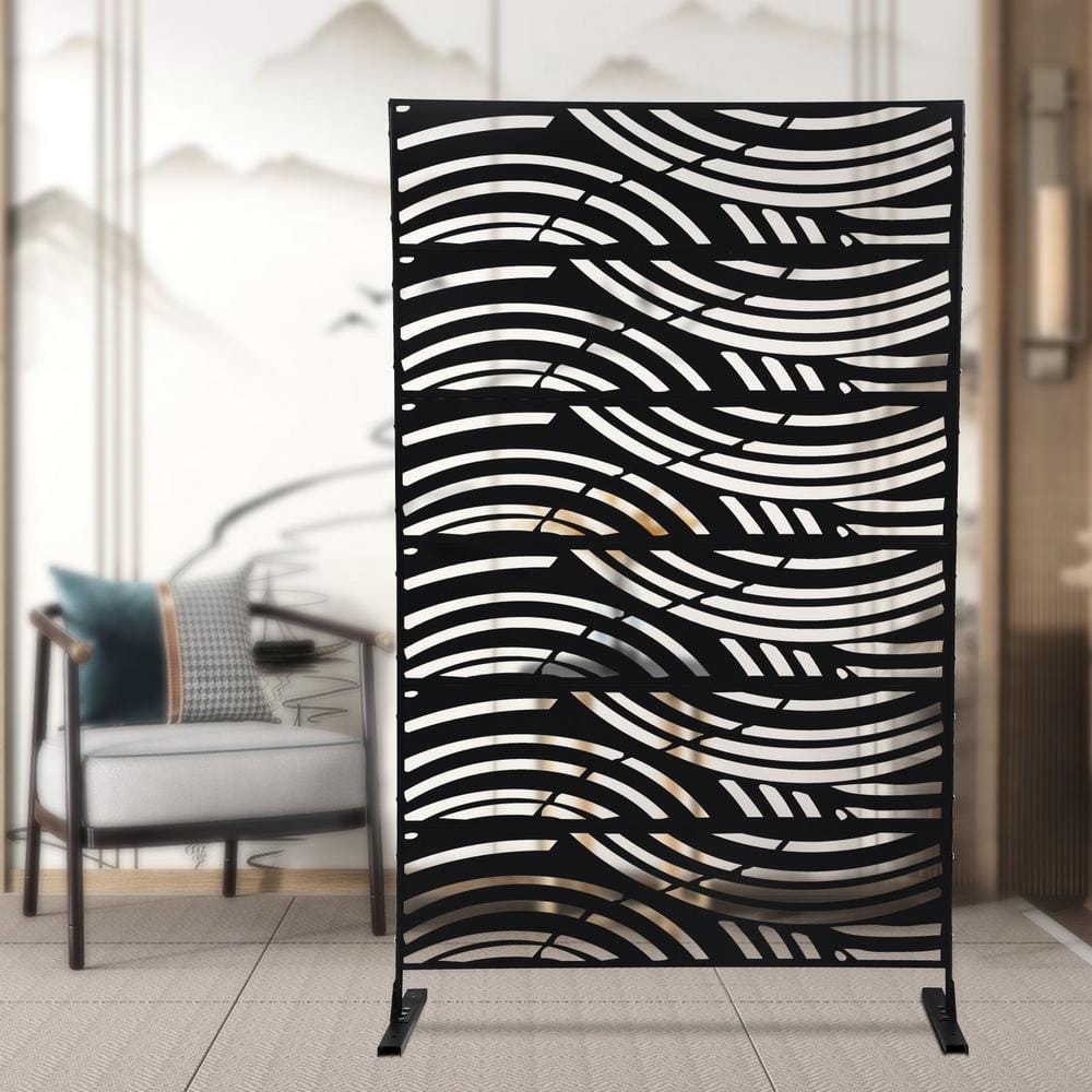 Enhance your outdoor space with the YIYIBYUS Black Outdoor Privacy Screen. Constructed from high-quality steel with a stylish flower-patterned hollow-out design, this screen provides privacy and blocks harsh elements, while adding decorative elegance to any setting. Its freestanding, sturdy design ensures long-lasting performance and visual appeal.